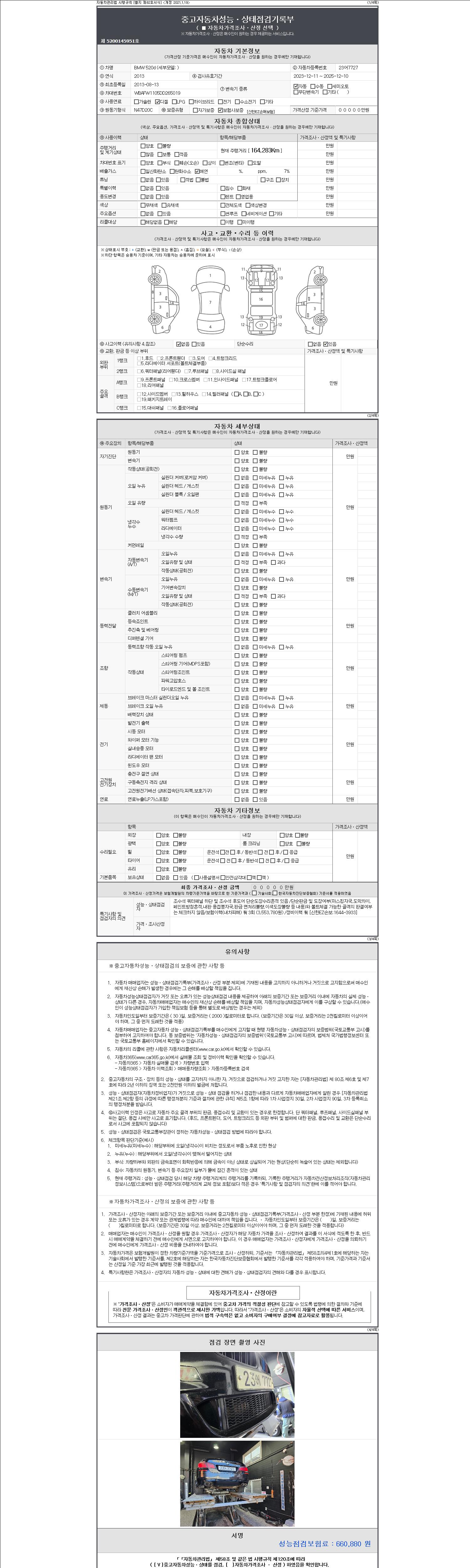 -중고자동차 매매업자를 통해 차량을 구입하실 경우 반드시 "중고자동차 성능, 상태점검 기록부"를 교뷰 받으셔야 하며, 매매업자는 반드시 의무 교부 하여야 압니다.
