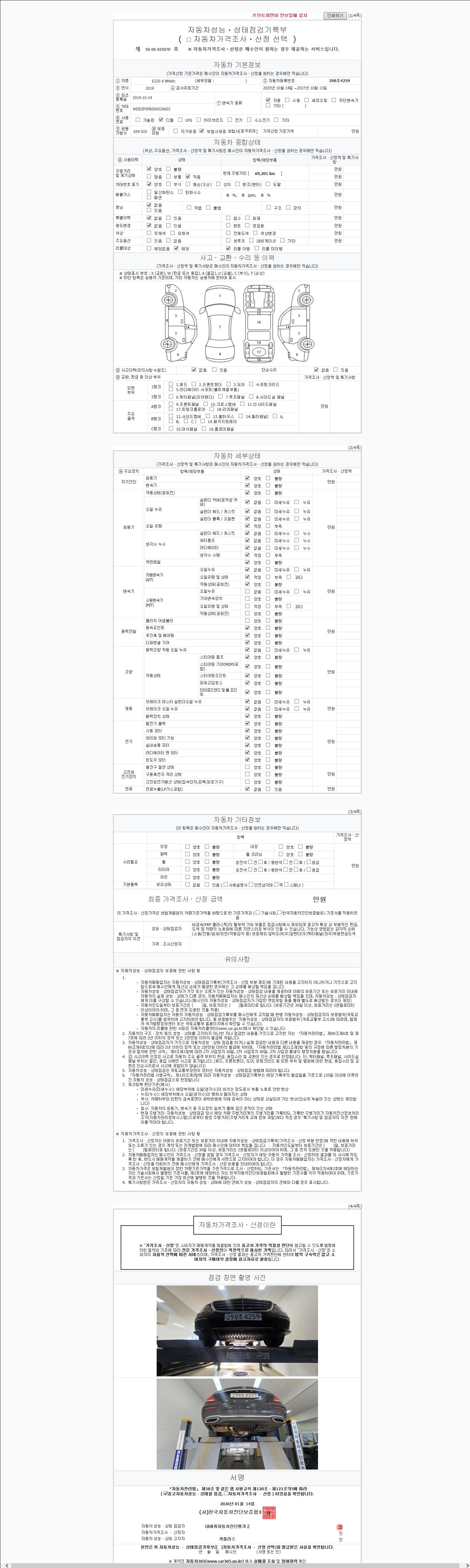 | 주행거리 | 69,201 km | 차량번호 | 298조4259 | 사고유무 | 성능기록부 참조 | 제시번호 | 제 2147483647 호 |
