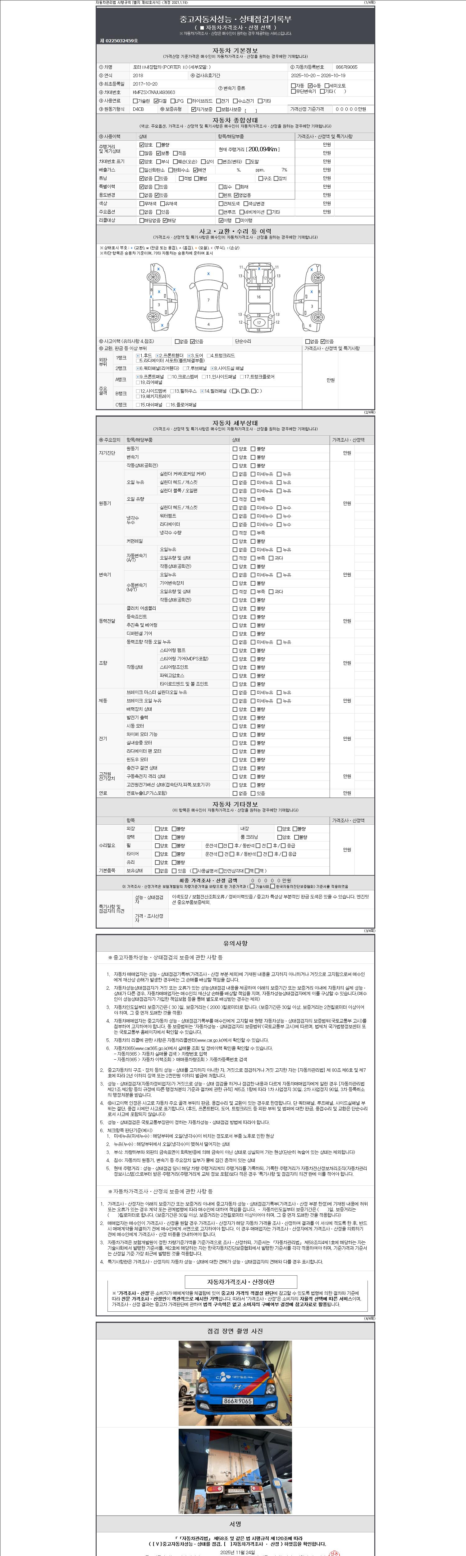 | 주행거리 | 200,094 km | 차량번호 | 866저9065 | 사고유무 | 성능기록부 참조 | 제시번호 | 제 2147483647 호 |