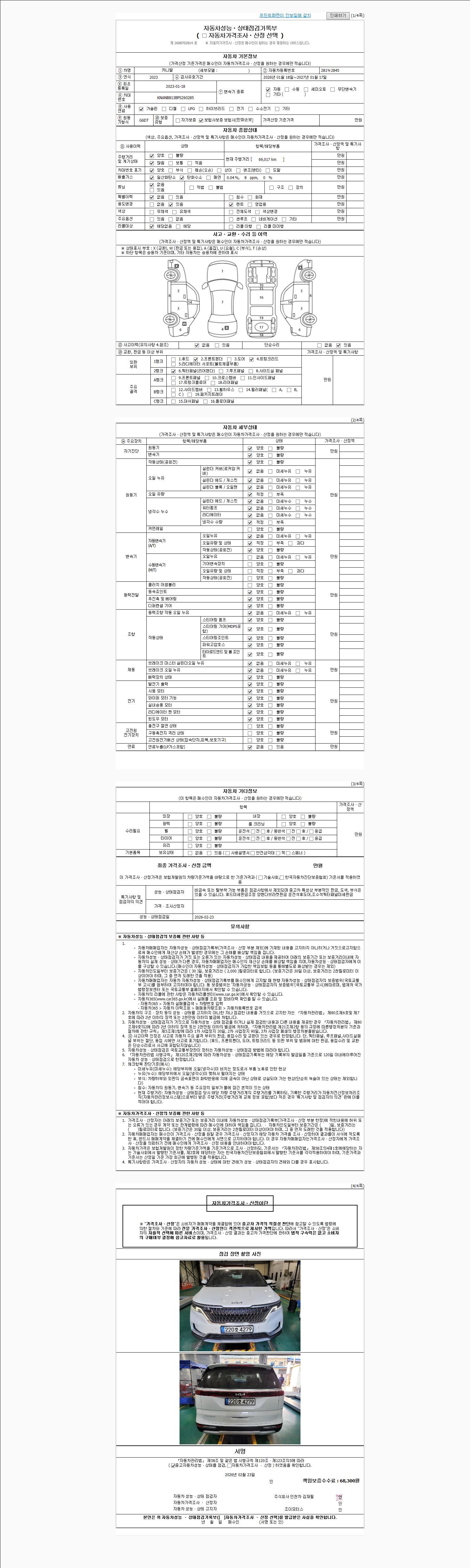 - 2. 차량 등록증이나 성능점검지 등을 상담자에게 요청및 확인하시고 사전에 미리 점검 하시기를 권유드립니다.