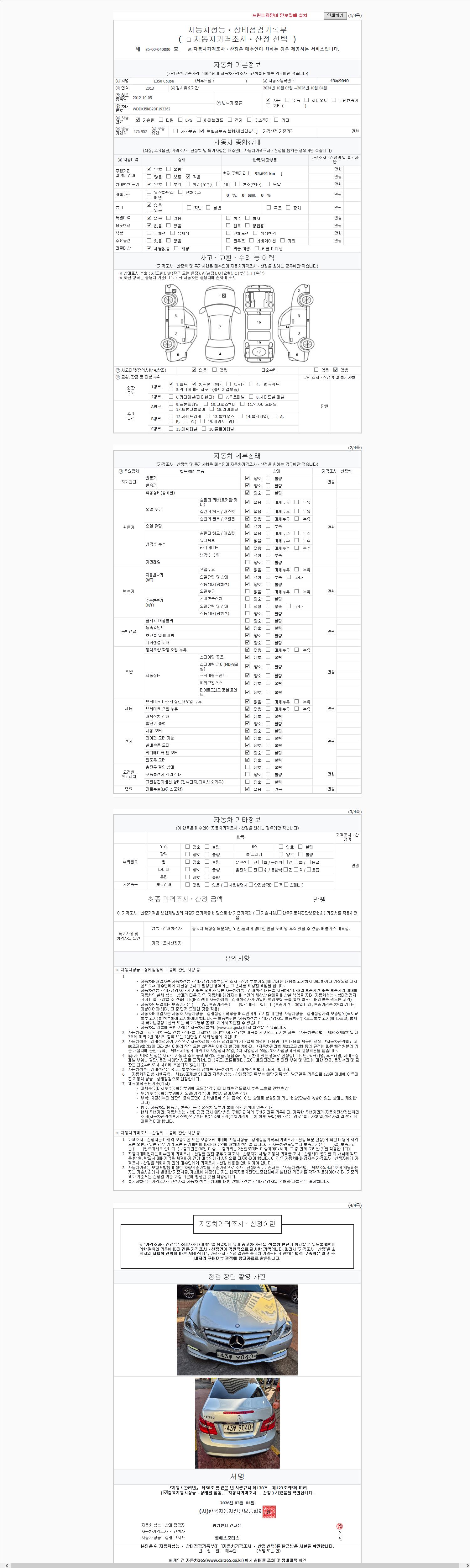 - 사고유무 : 성능기록부 참조