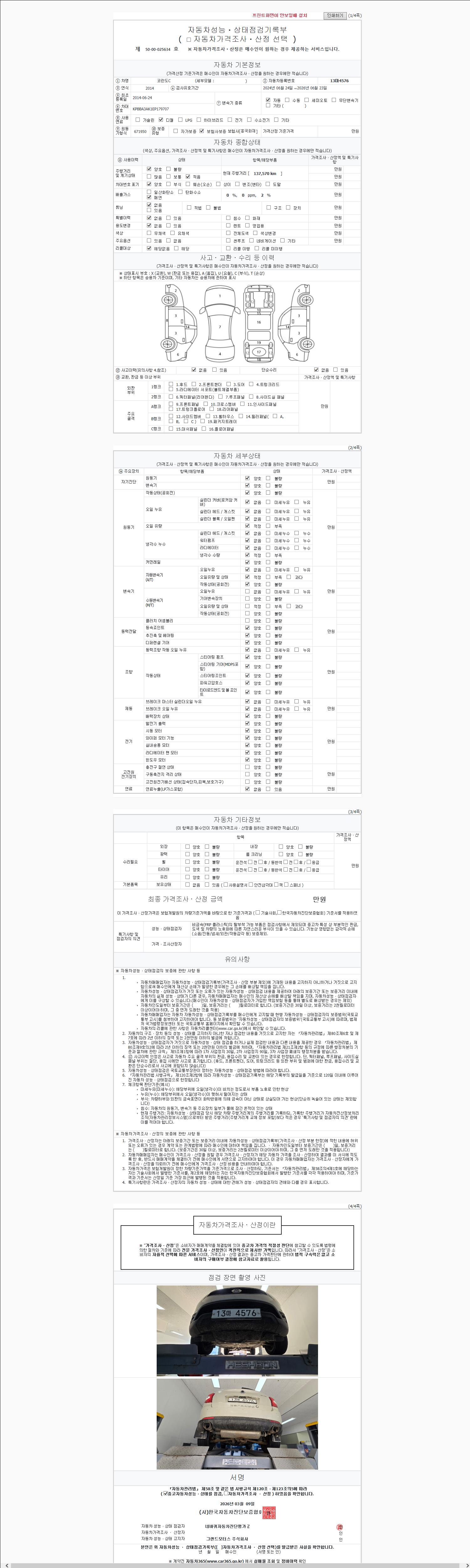 - 2. 차량 등록증이나 성능점검지 등을 상담자에게 요청및 확인하시고 사전에 미리 점검 하시기를 권유드립니다.