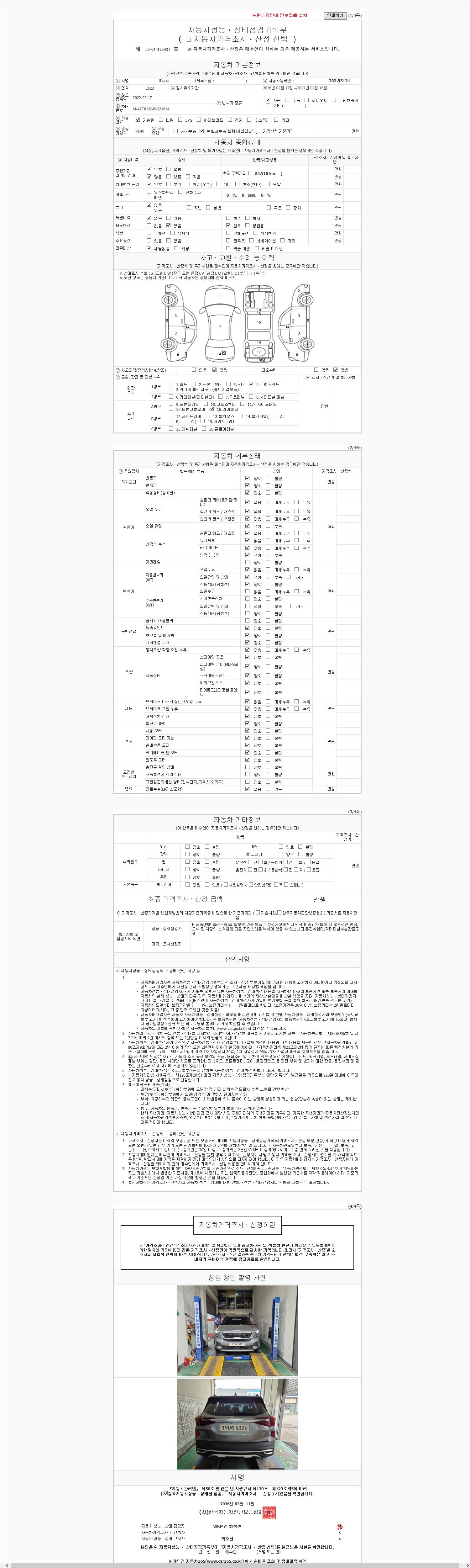 - 2. 차량 등록증이나 성능점검지 등을 상담자에게 요청및 확인하시고 사전에 미리 점검 하시기를 권유드립니다.
