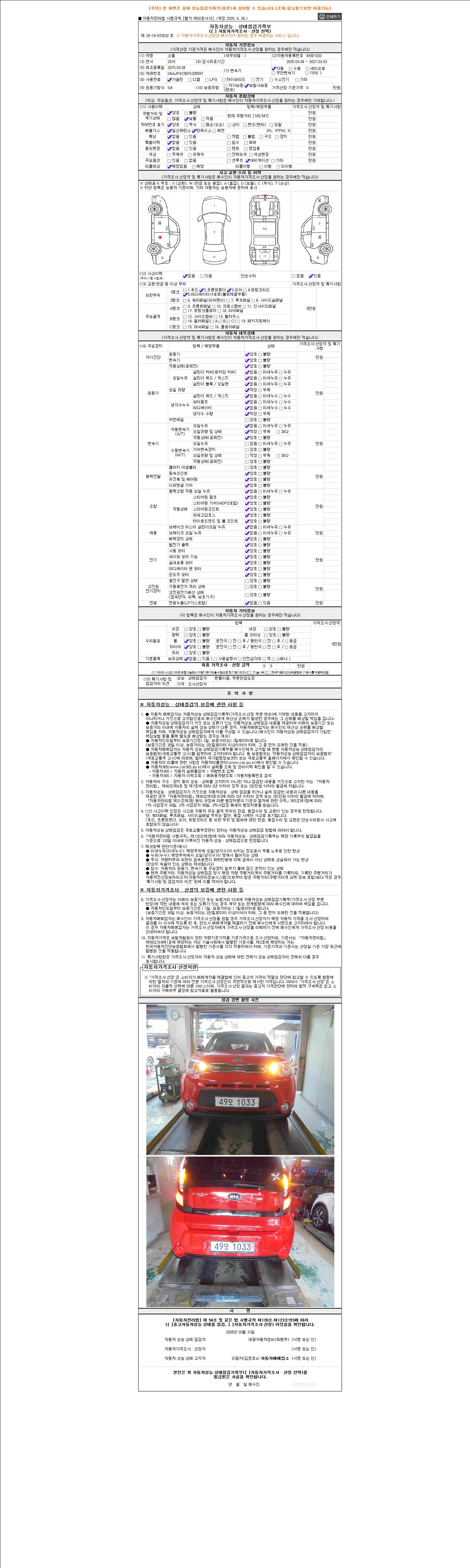 - 2. 차량 등록증이나 성능점검지 등을 상담자에게 요청및 확인하시고 사전에 미리 점검 하시기를 권유드립니다.