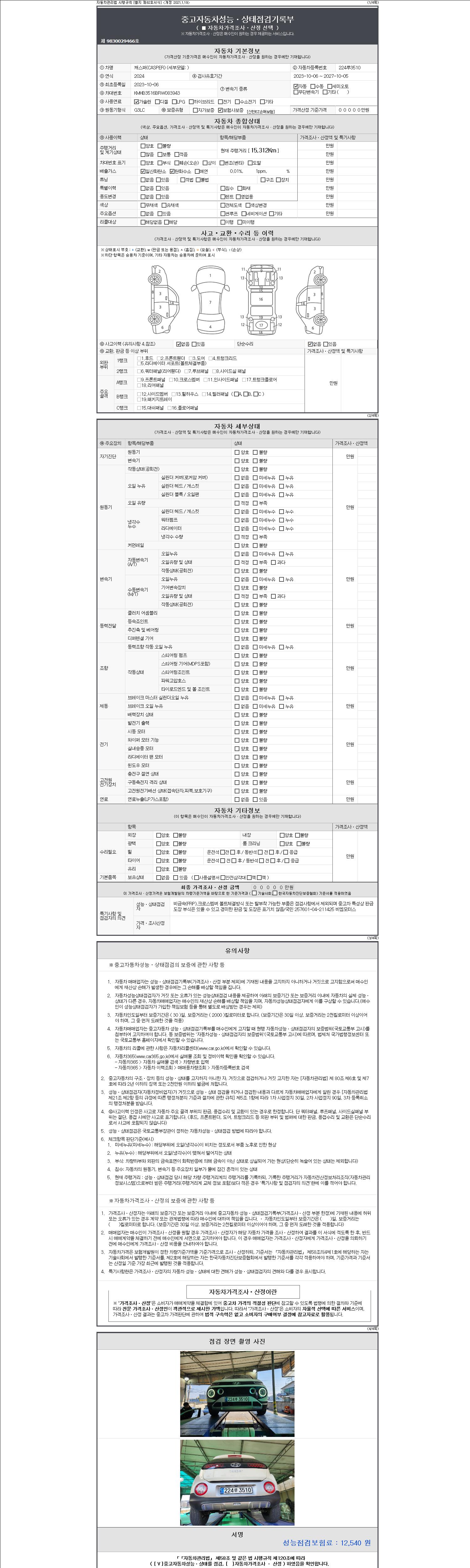 | 주행거리 | 15,312 km | 차량번호 | 224루3510 | 사고유무 | 성능기록부 참조 | 제시번호 | 제 2147483647 호 |