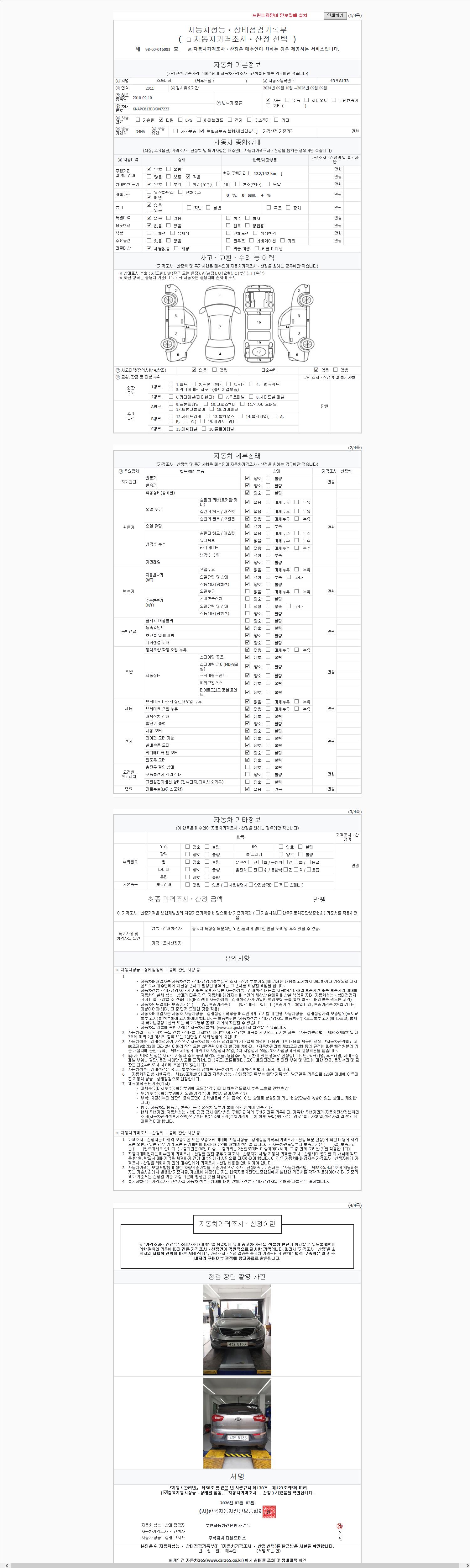 -중고자동차 매매업자를 통해 차량을 구입하실 경우 반드시 "중고자동차 성능, 상태점검 기록부"를 교뷰 받으셔야 하며, 매매업자는 반드시 의무 교부 하여야 압니다.