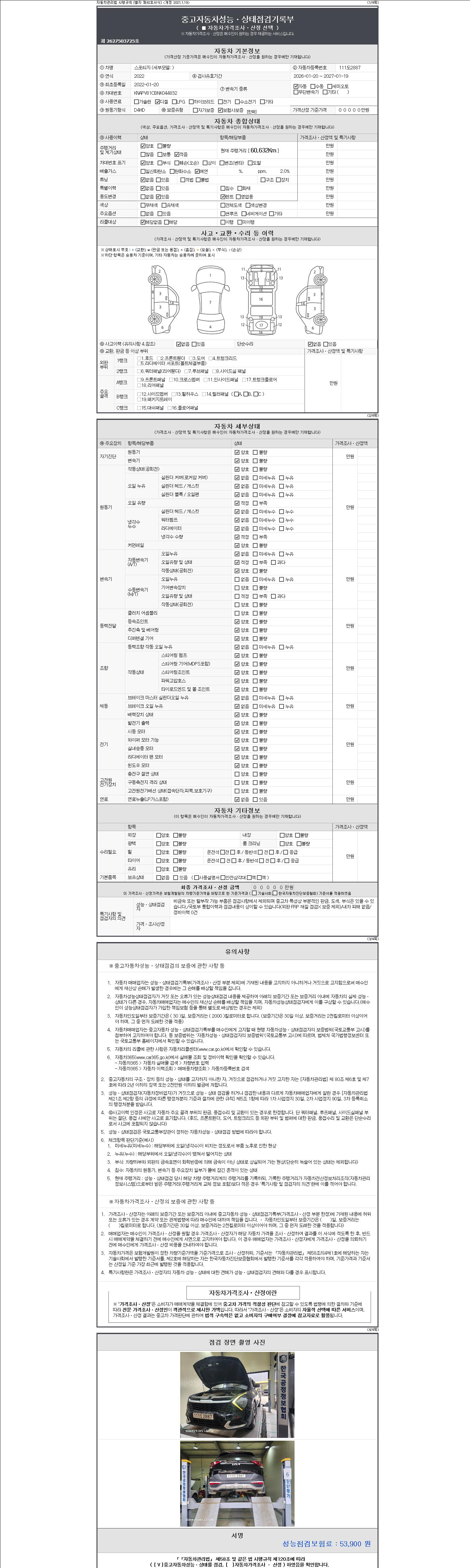 -중고자동차 매매업자를 통해 차량을 구입하실 경우 반드시 "중고자동차 성능, 상태점검 기록부"를 교뷰 받으셔야 하며, 매매업자는 반드시 의무 교부 하여야 압니다.