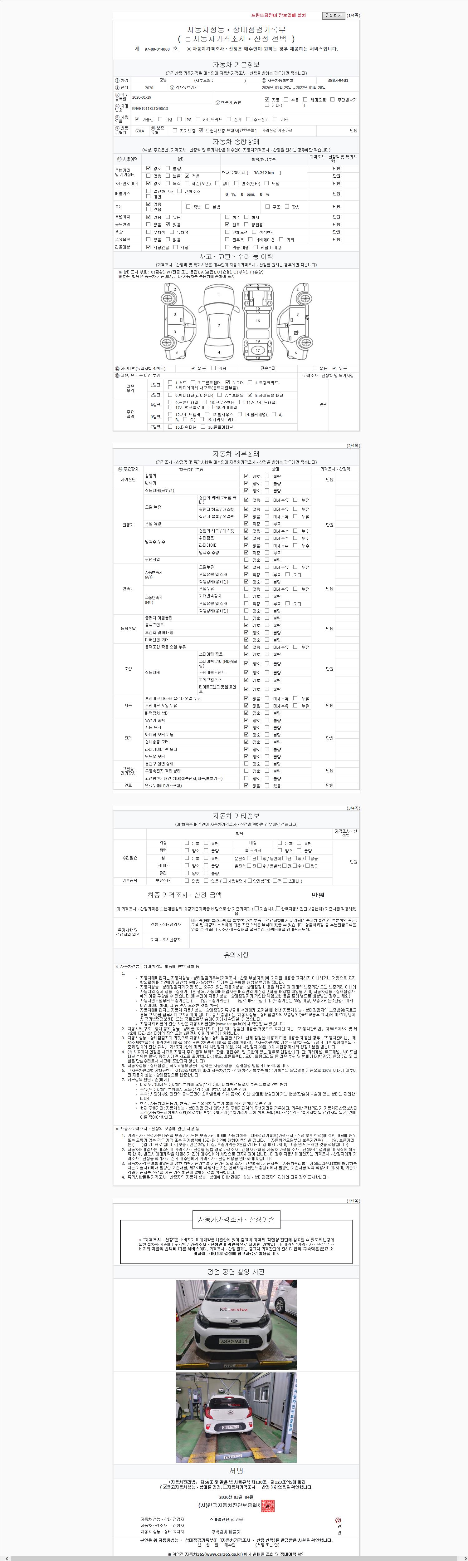 - 2. 차량 등록증이나 성능점검지 등을 상담자에게 요청및 확인하시고 사전에 미리 점검 하시기를 권유드립니다.