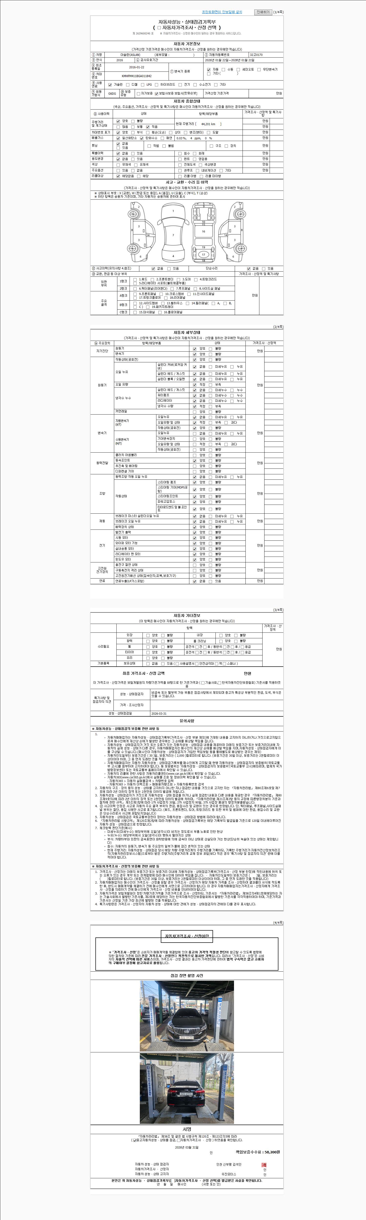 | 주행거리 | 44,201 km | 차량번호 | 32고0170 | 사고유무 | 성능기록부 참조 | 제시번호 | 제 2026016567 호 |