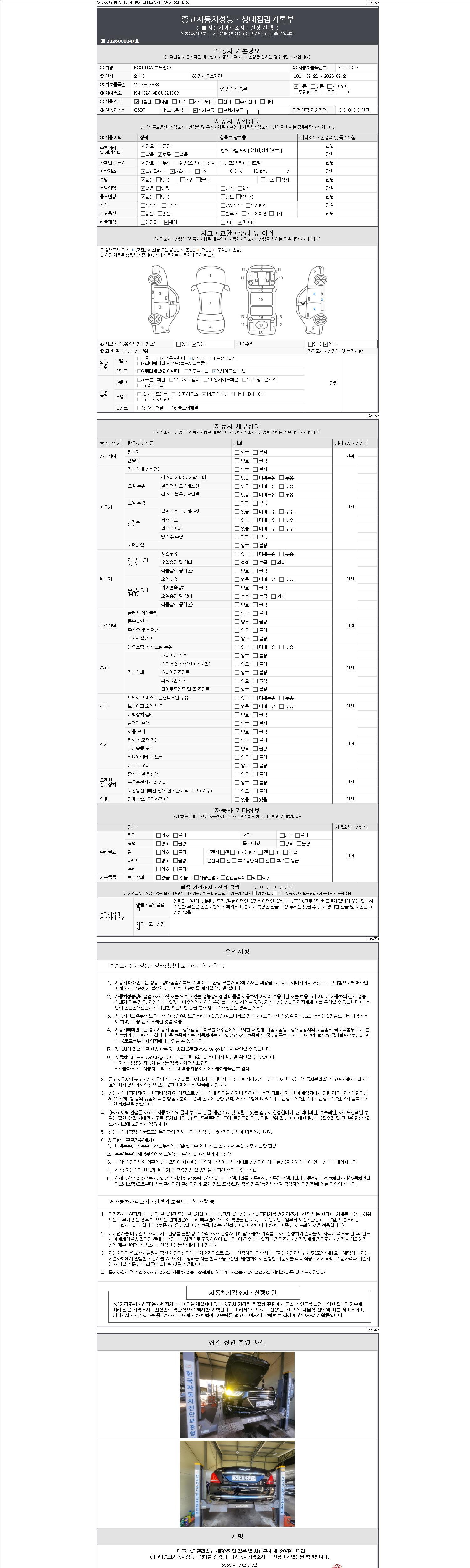 - 2. 차량 등록증이나 성능점검지 등을 상담자에게 요청및 확인하시고 사전에 미리 점검 하시기를 권유드립니다.