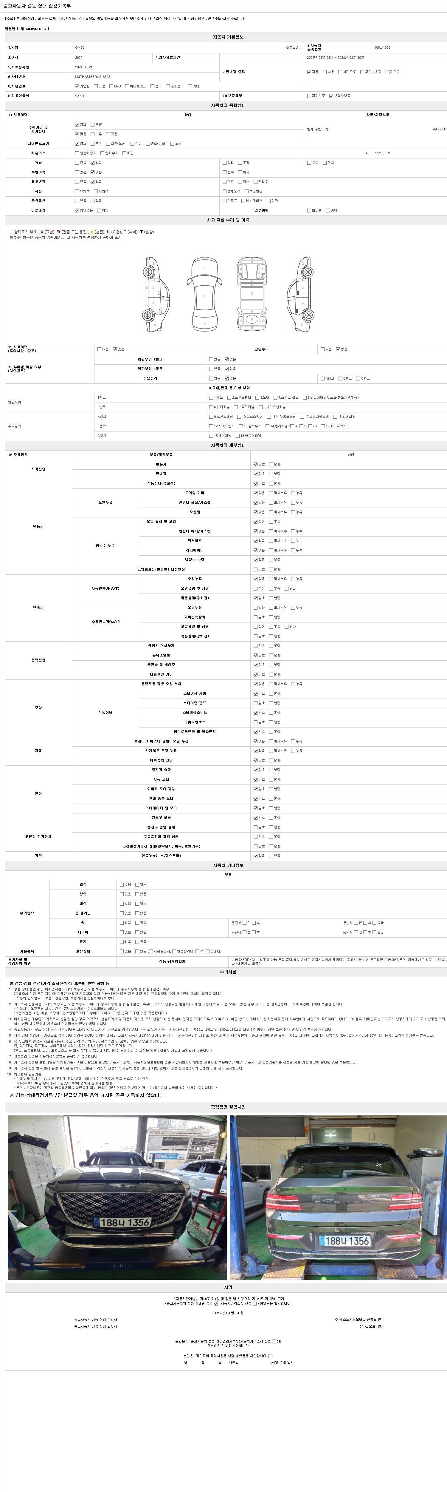 - 2. 차량 등록증이나 성능점검지 등을 상담자에게 요청및 확인하시고 사전에 미리 점검 하시기를 권유드립니다.