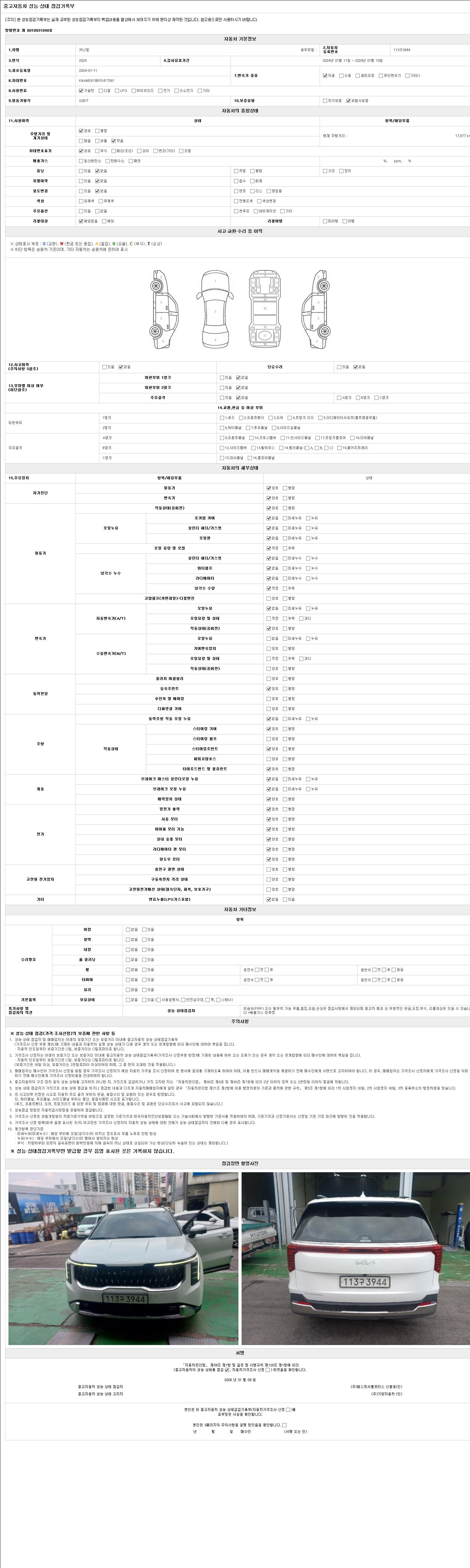 | 주행거리 | 17,677 km | 차량번호 | 113구3944 | 사고유무 | 성능기록부 참조 | 제시번호 | 제 2026000972 호 |