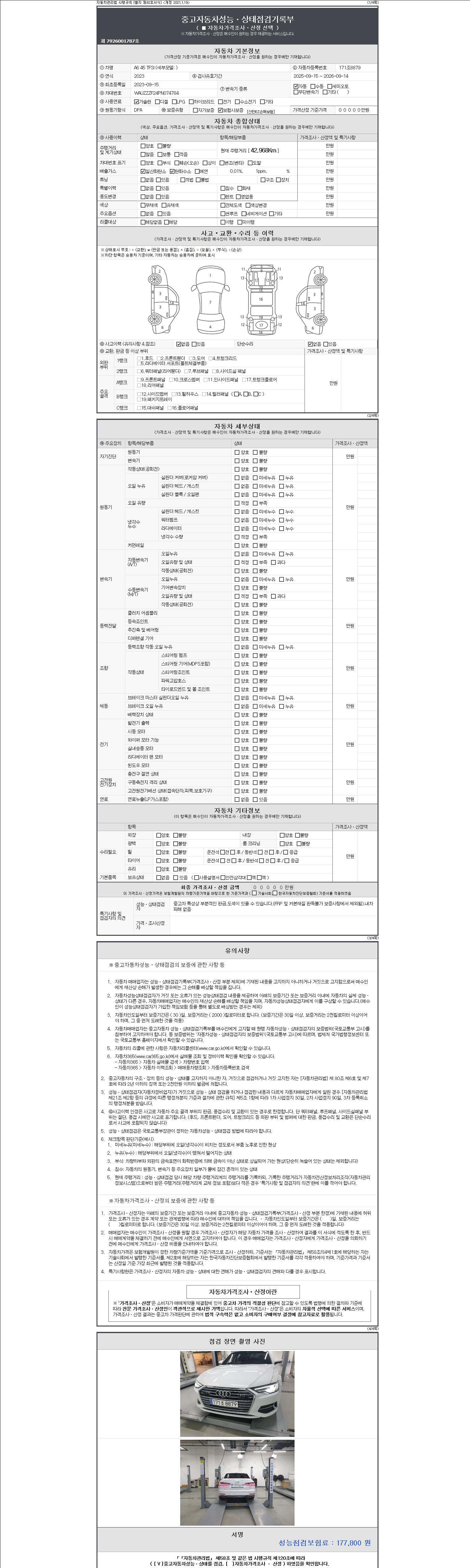 - 2. 차량 등록증이나 성능점검지 등을 상담자에게 요청및 확인하시고 사전에 미리 점검 하시기를 권유드립니다.