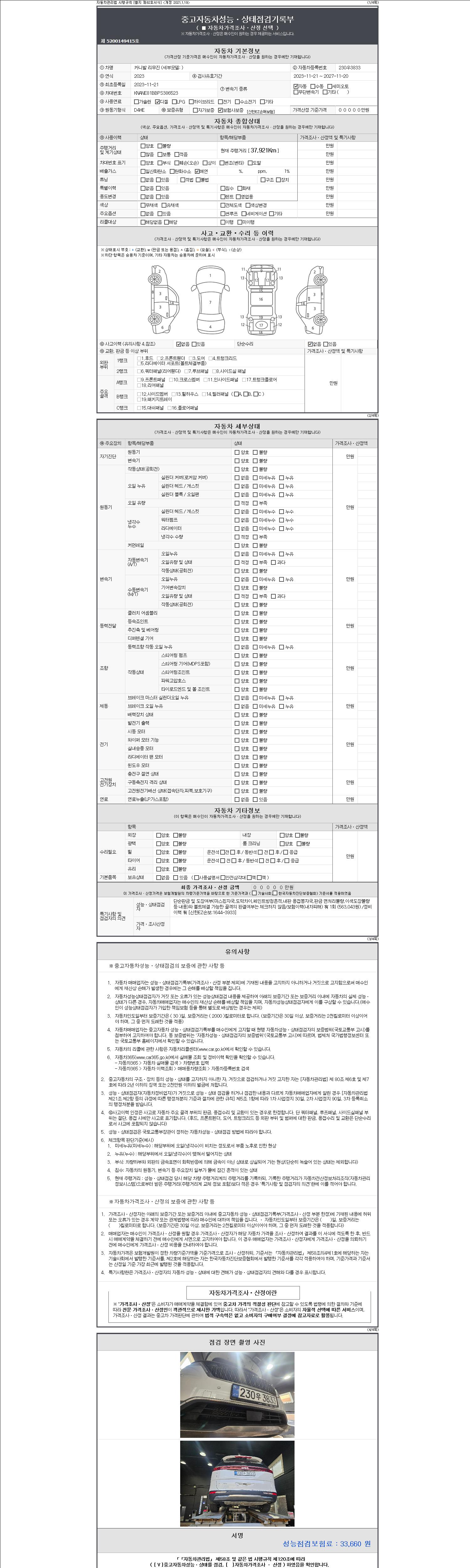 | 주행거리 | 37,921 km | 차량번호 | 230우3833 | 사고유무 | 성능기록부 참조 | 제시번호 | 제 2147483647 호 |
