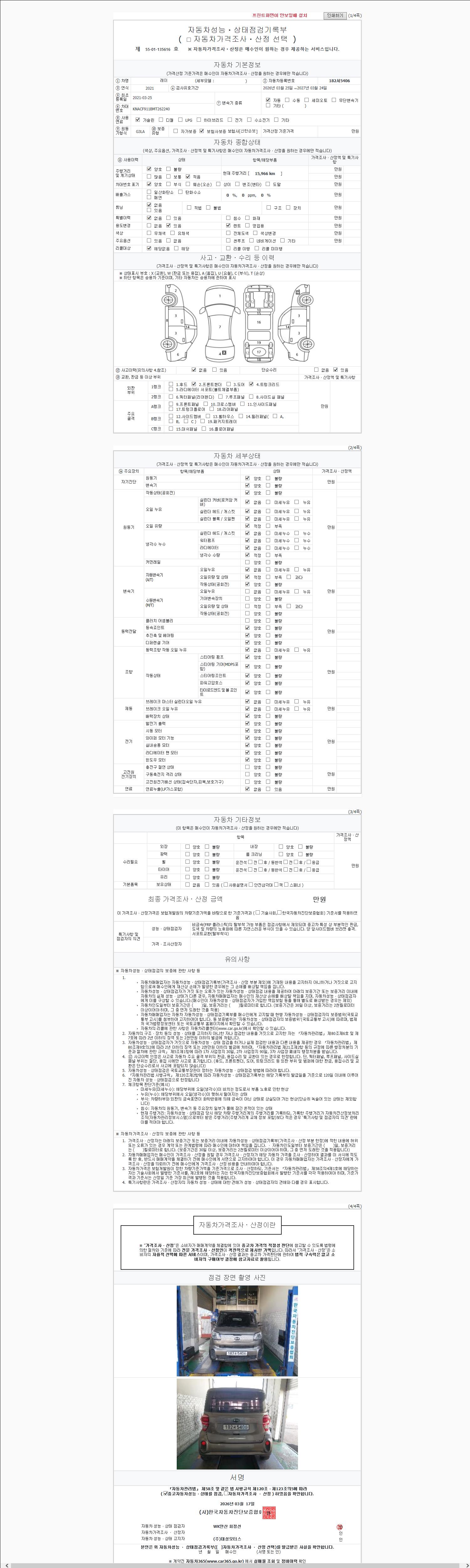 - 사고유무 : 성능기록부 참조