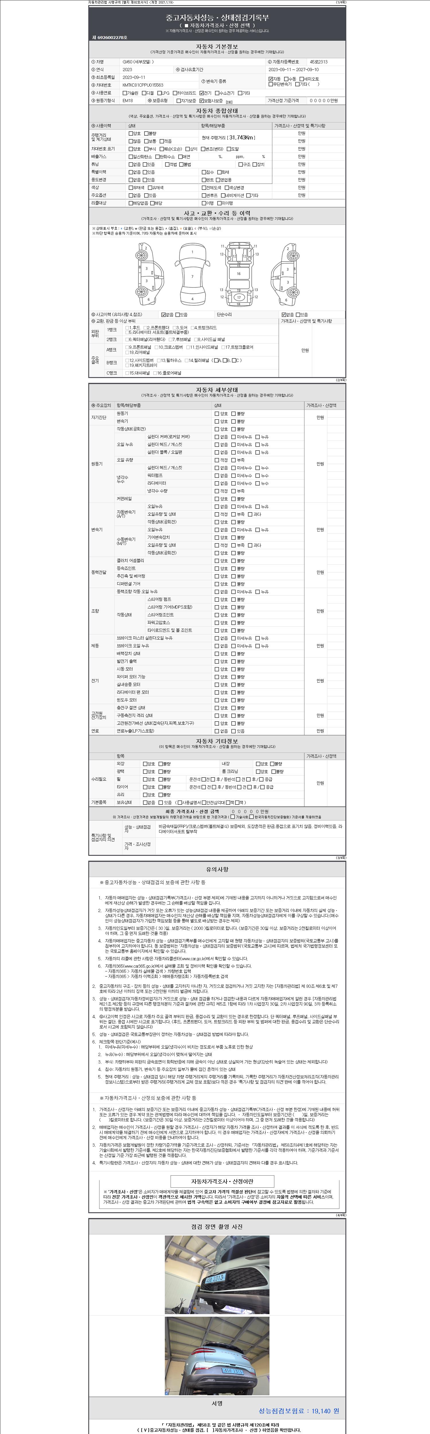 - 사고유무 : 성능기록부 참조