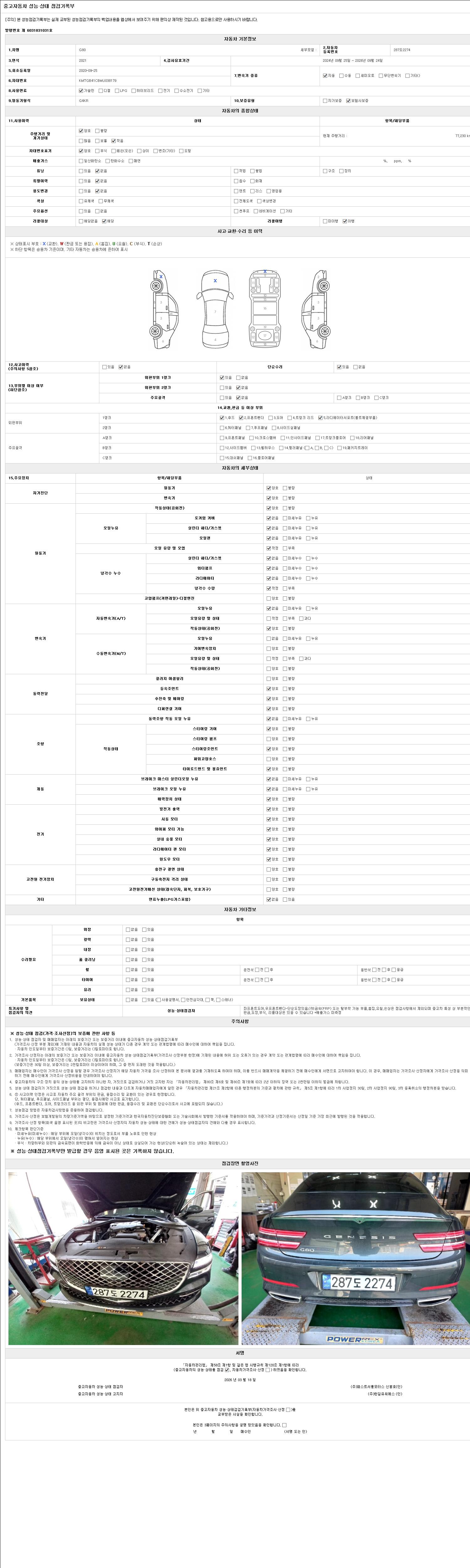 - 2. 차량 등록증이나 성능점검지 등을 상담자에게 요청및 확인하시고 사전에 미리 점검 하시기를 권유드립니다.