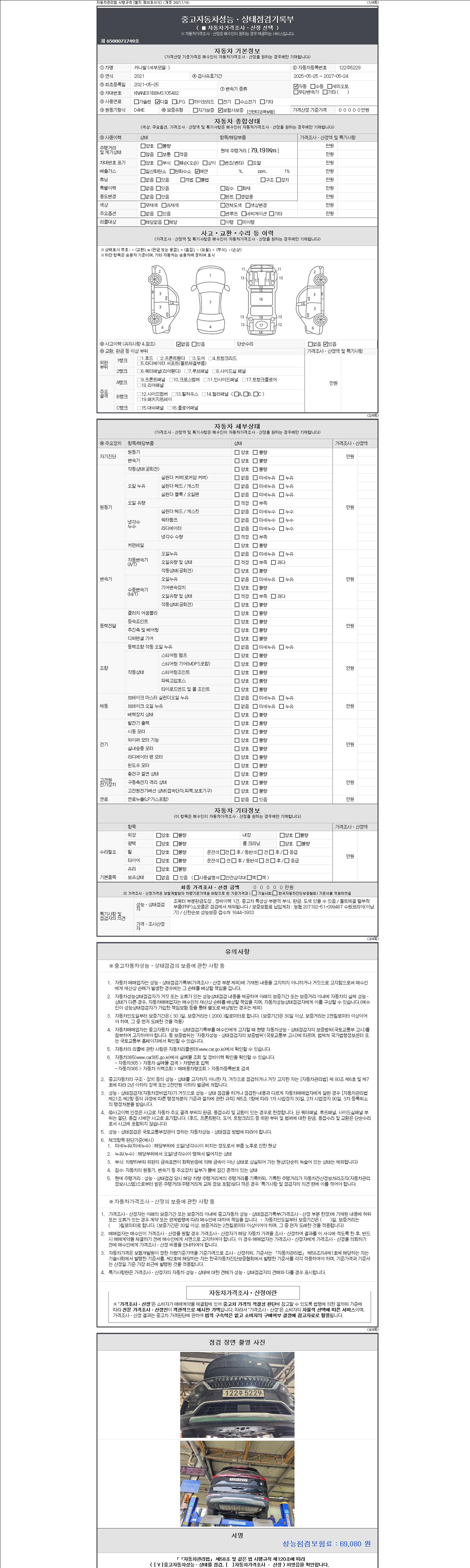 | 주행거리 | 79,191 km | 차량번호 | 122주5229 | 사고유무 | 성능기록부 참조 | 제시번호 | 제 2147483647 호 |