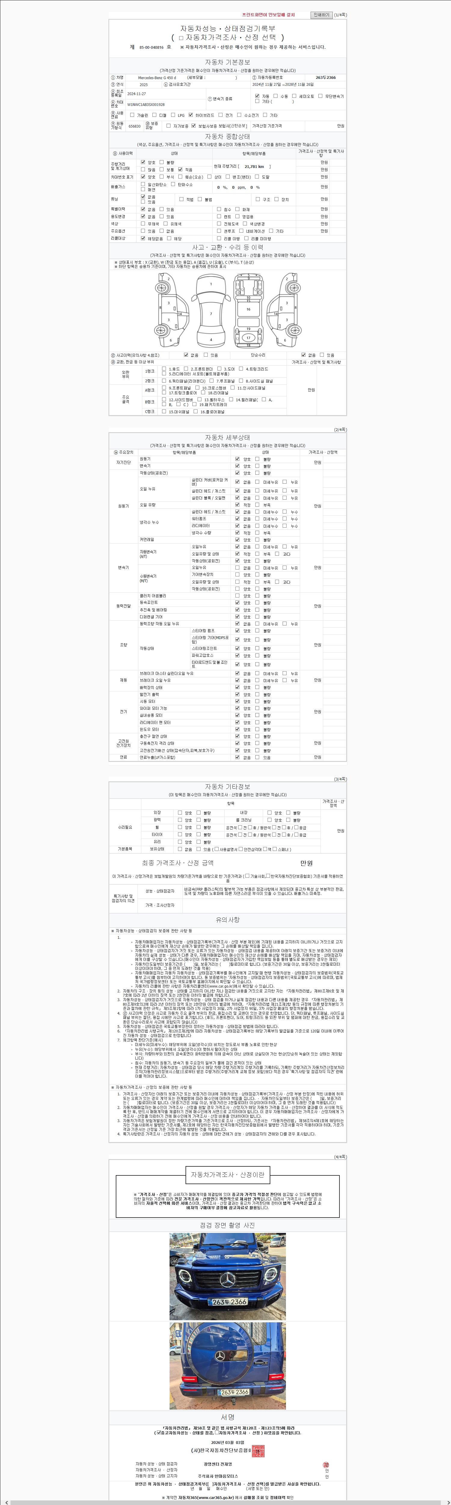 | 주행거리 | 21,780 km | 차량번호 | 263두2366 | 사고유무 | 성능기록부 참조 | 제시번호 | 제 2147483647 호 |