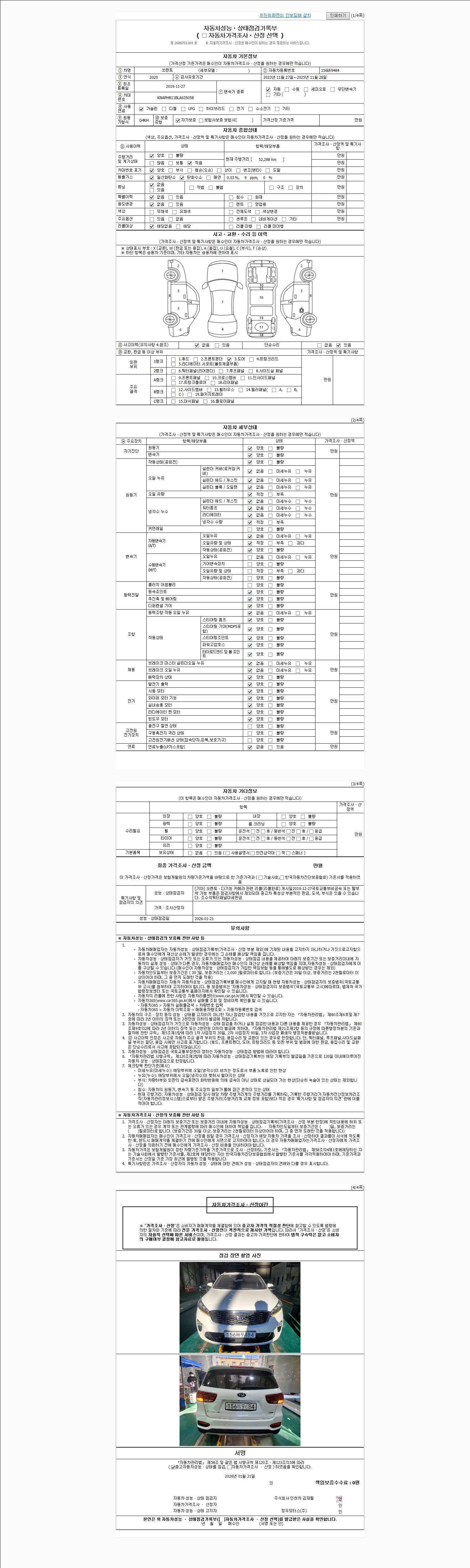 - 2. 차량 등록증이나 성능점검지 등을 상담자에게 요청및 확인하시고 사전에 미리 점검 하시기를 권유드립니다.