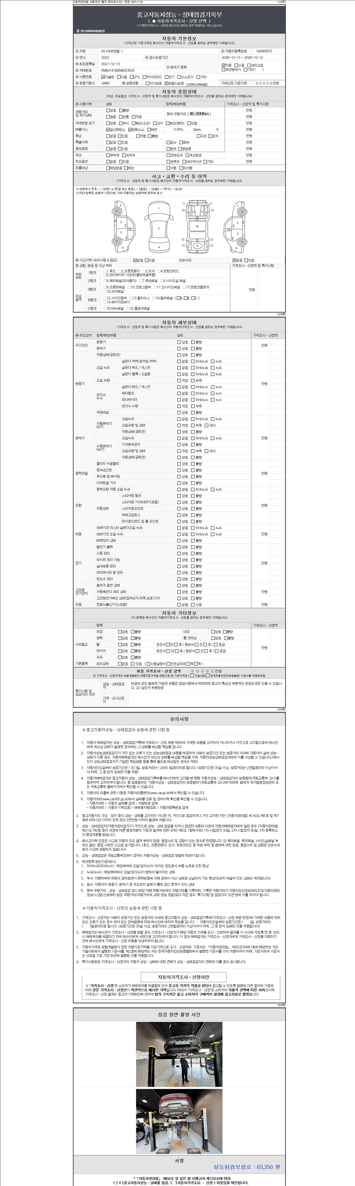 | 주행거리 | 46,090 km | 차량번호 | 144무8537 | 사고유무 | 성능기록부 참조 | 제시번호 | 제 2147483647 호 |