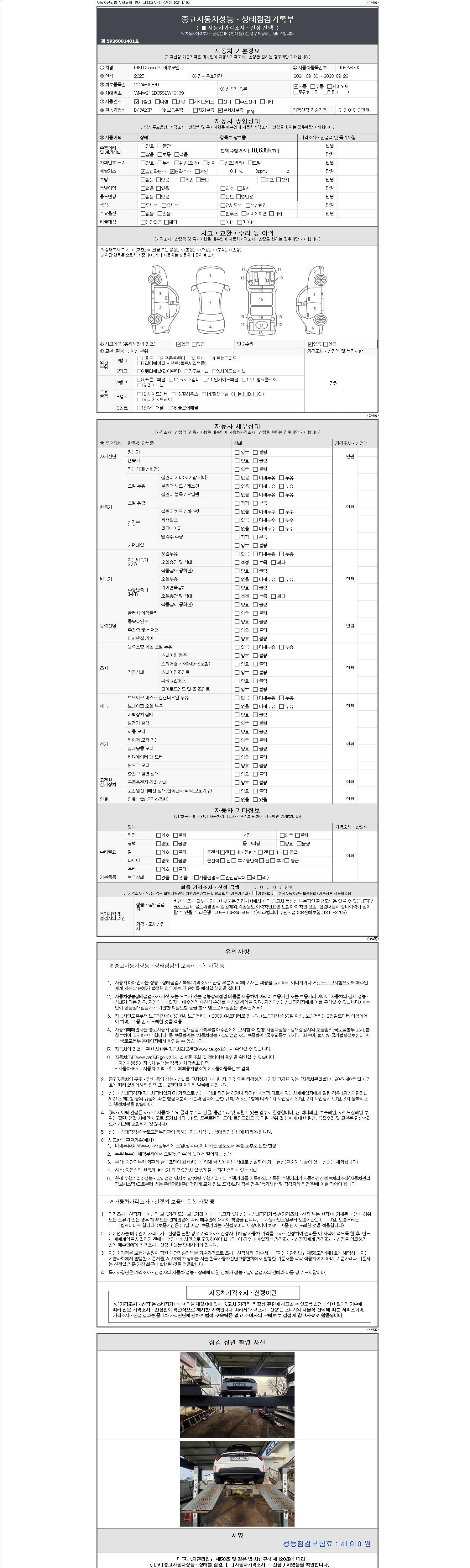- 사고유무 : 성능기록부 참조