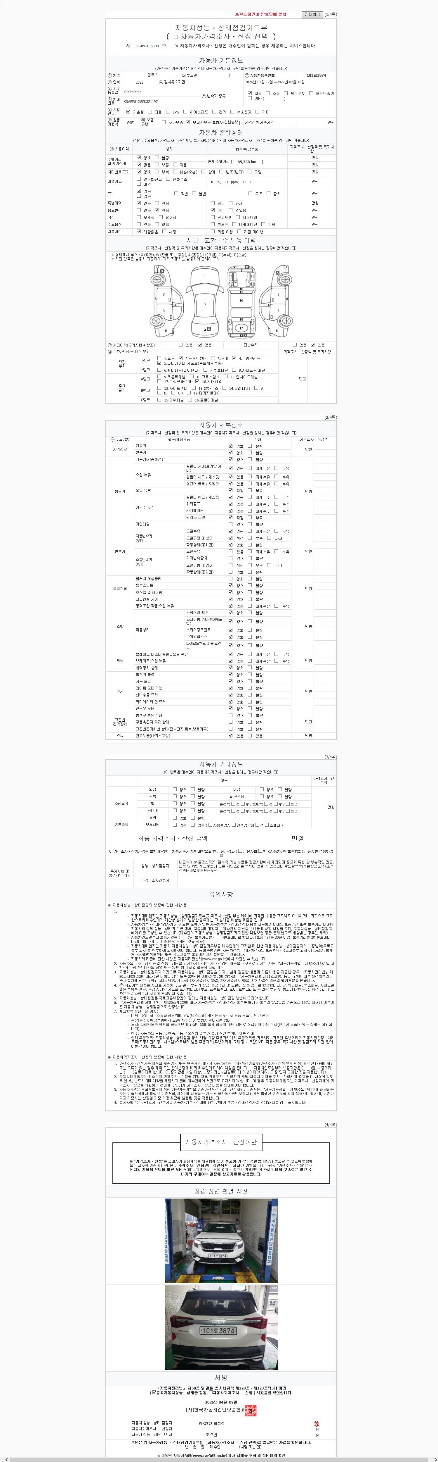 - 2. 차량 등록증이나 성능점검지 등을 상담자에게 요청및 확인하시고 사전에 미리 점검 하시기를 권유드립니다.
