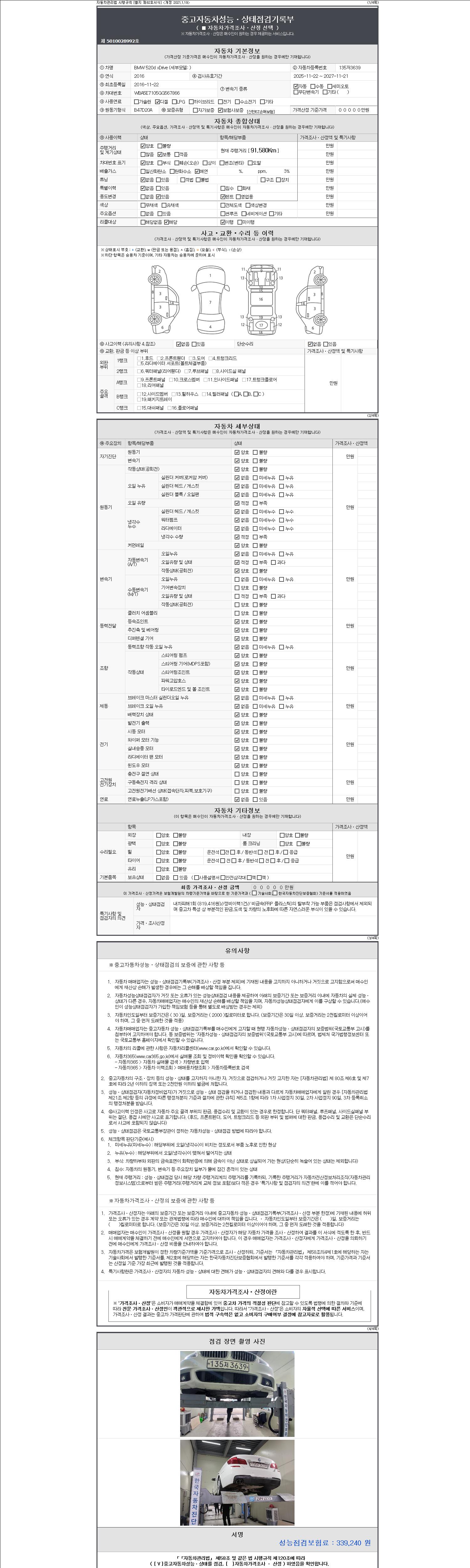 | 주행거리 | 91,580 km | 차량번호 | 135저3639 | 사고유무 | 성능기록부 참조 | 제시번호 | 제 2147483647 호 |