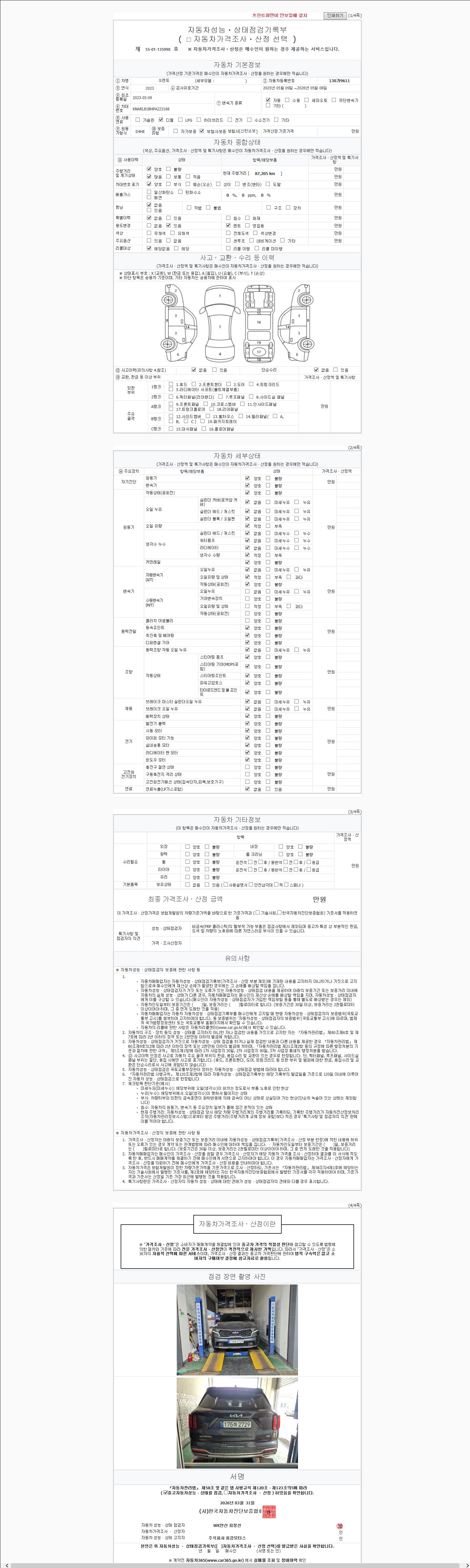 - 2. 차량 등록증이나 성능점검지 등을 상담자에게 요청및 확인하시고 사전에 미리 점검 하시기를 권유드립니다.