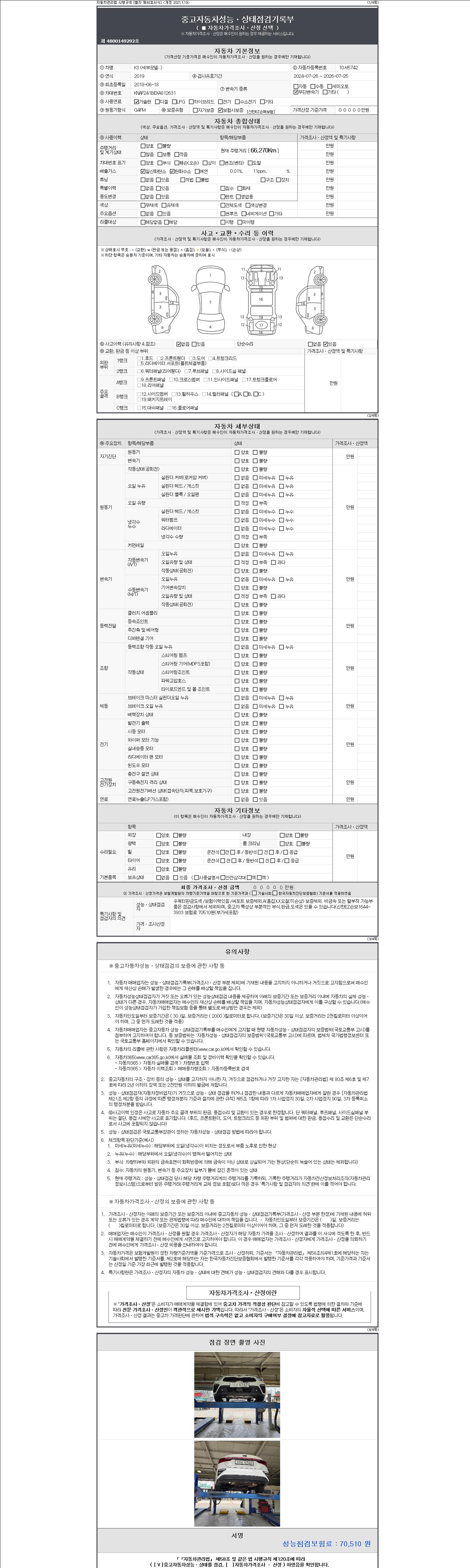 - 2. 차량 등록증이나 성능점검지 등을 상담자에게 요청및 확인하시고 사전에 미리 점검 하시기를 권유드립니다.
