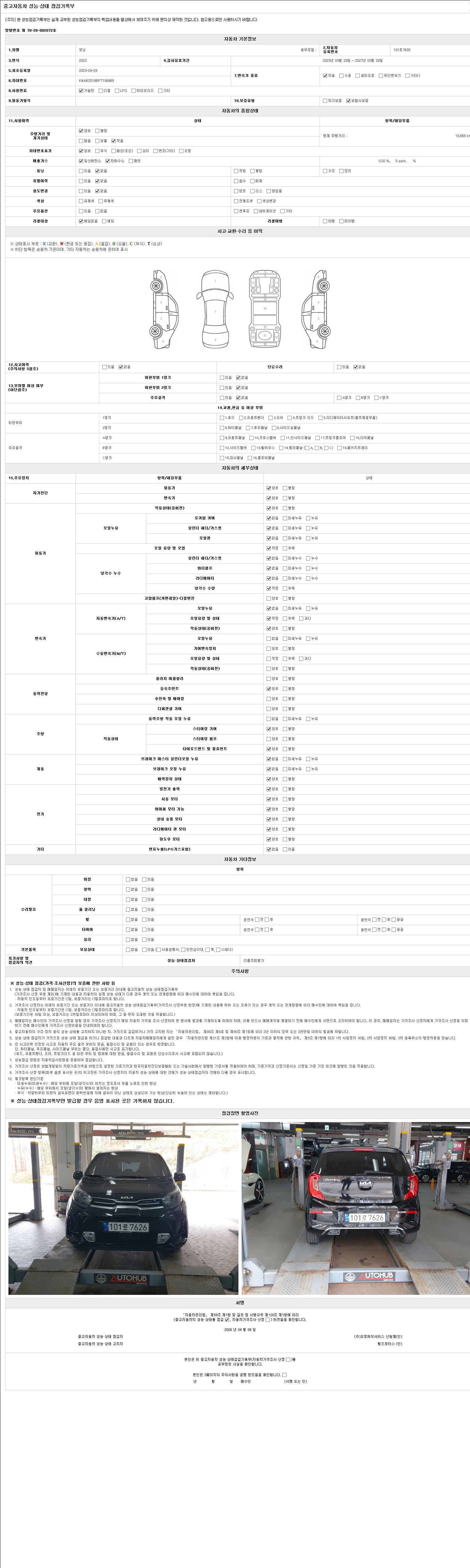 | 주행거리 | 19,668 km | 차량번호 | 101로7626 | 사고유무 | 성능기록부 참조 | 제시번호 | 제 2147483647 호 |