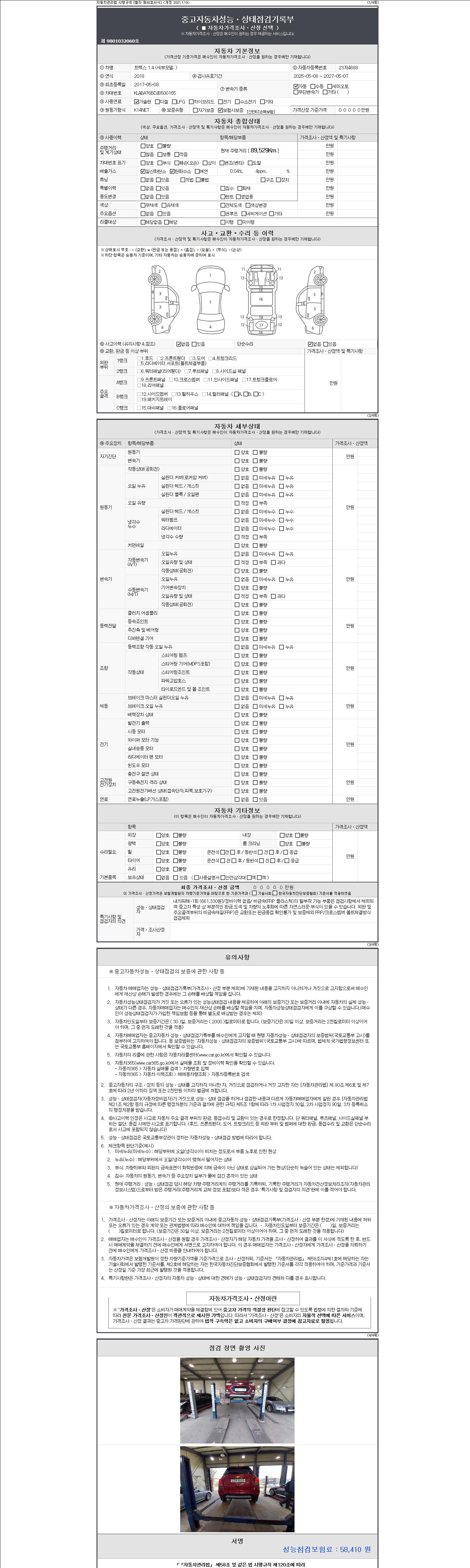 - 2. 차량 등록증이나 성능점검지 등을 상담자에게 요청및 확인하시고 사전에 미리 점검 하시기를 권유드립니다.