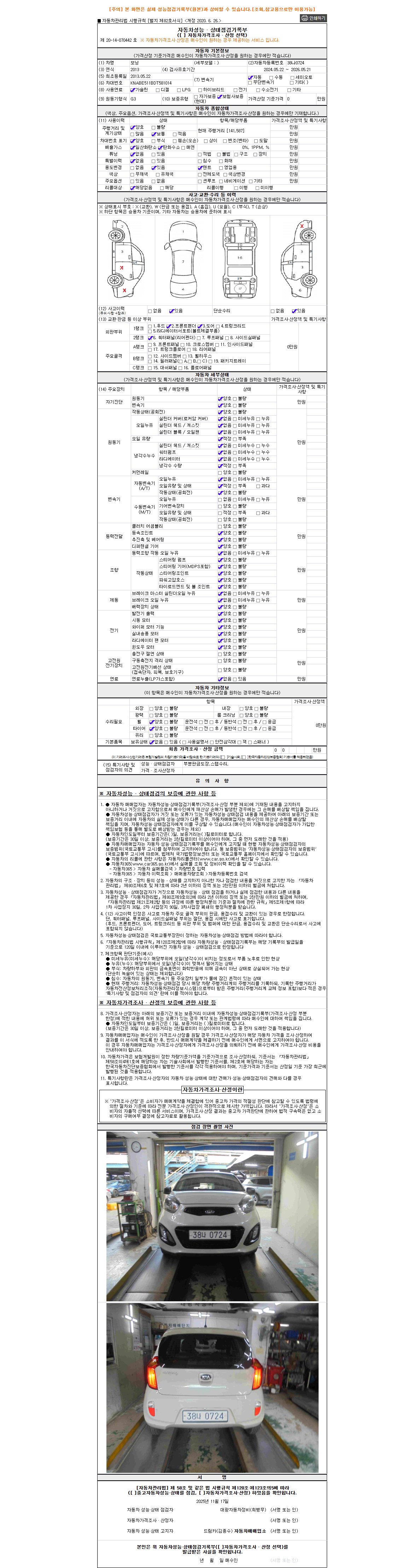 - 2. 차량 등록증이나 성능점검지 등을 상담자에게 요청및 확인하시고 사전에 미리 점검 하시기를 권유드립니다.