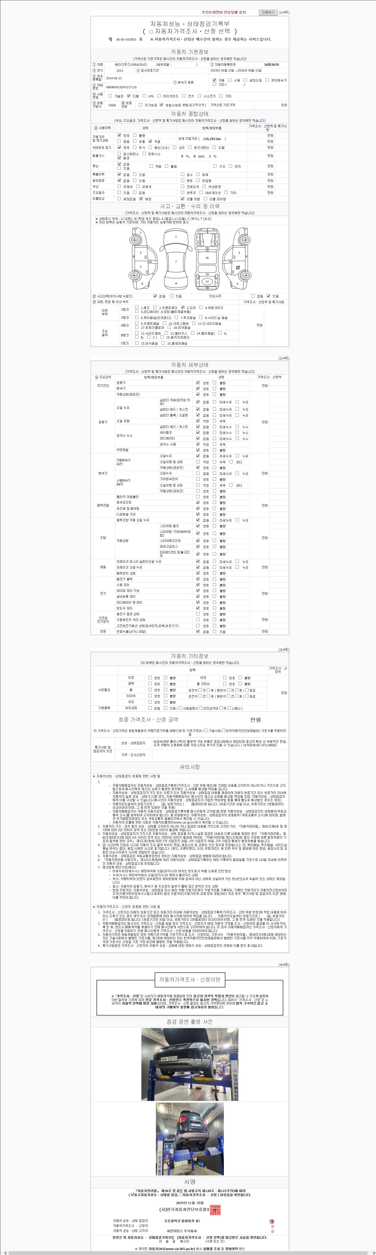 - 2. 차량 등록증이나 성능점검지 등을 상담자에게 요청및 확인하시고 사전에 미리 점검 하시기를 권유드립니다.