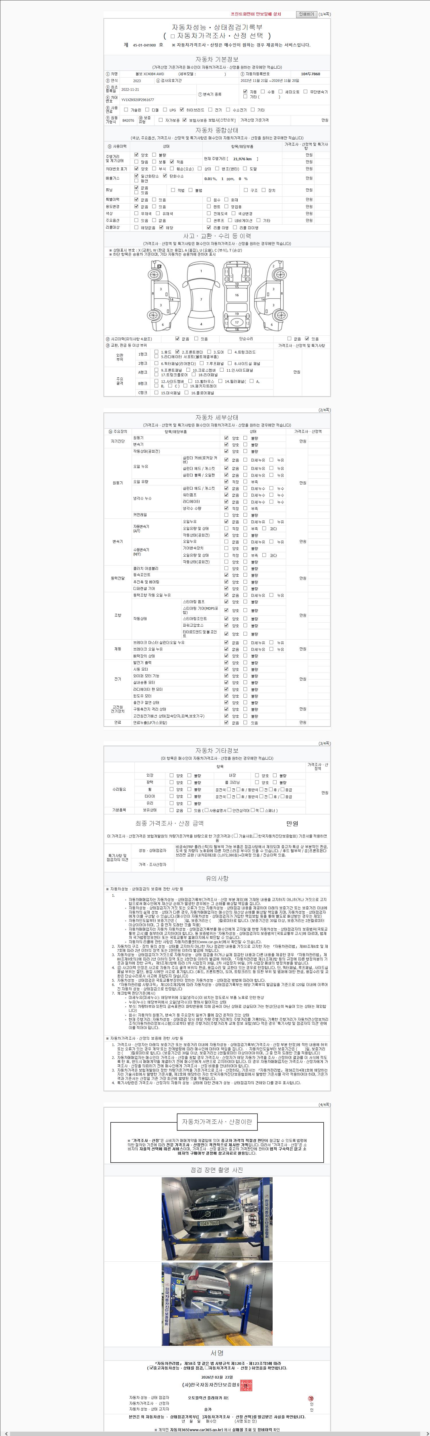 - 2. 차량 등록증이나 성능점검지 등을 상담자에게 요청및 확인하시고 사전에 미리 점검 하시기를 권유드립니다.