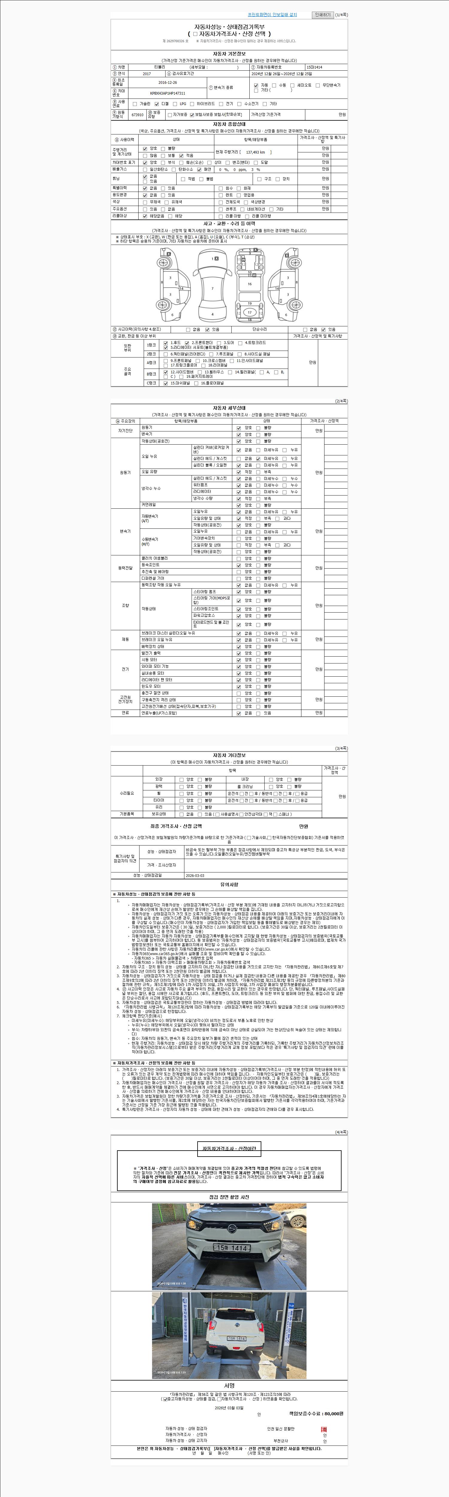 - 2. 차량 등록증이나 성능점검지 등을 상담자에게 요청및 확인하시고 사전에 미리 점검 하시기를 권유드립니다.