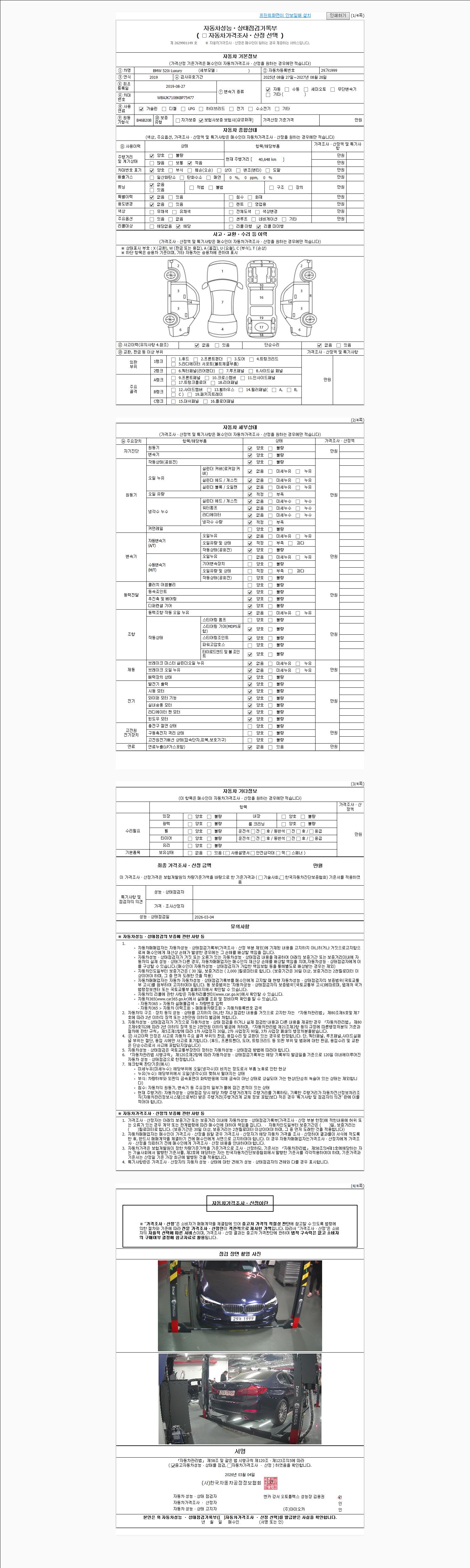 -중고자동차 매매업자를 통해 차량을 구입하실 경우 반드시 "중고자동차 성능, 상태점검 기록부"를 교뷰 받으셔야 하며, 매매업자는 반드시 의무 교부 하여야 압니다.