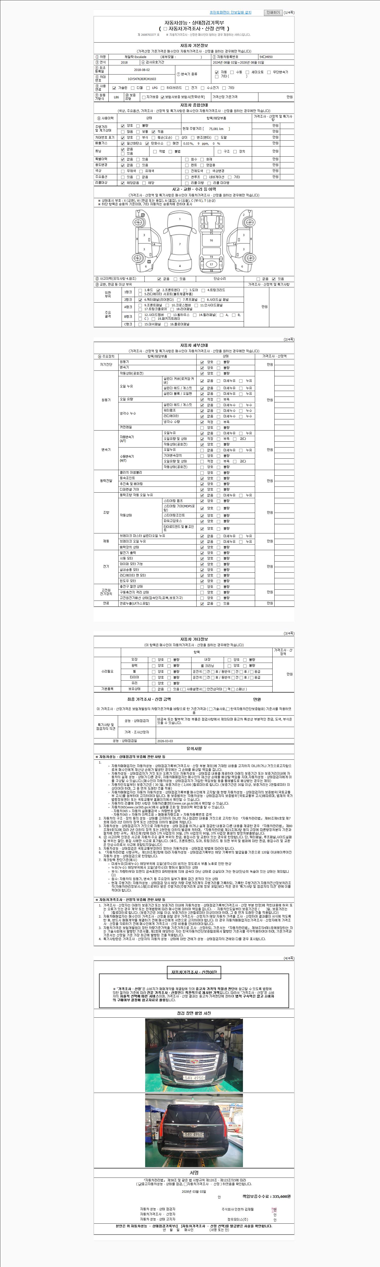 | 주행거리 | 75,081 km | 차량번호 | 54다4950 | 사고유무 | 성능기록부 참조 | 제시번호 | 제 2026011009 호 |