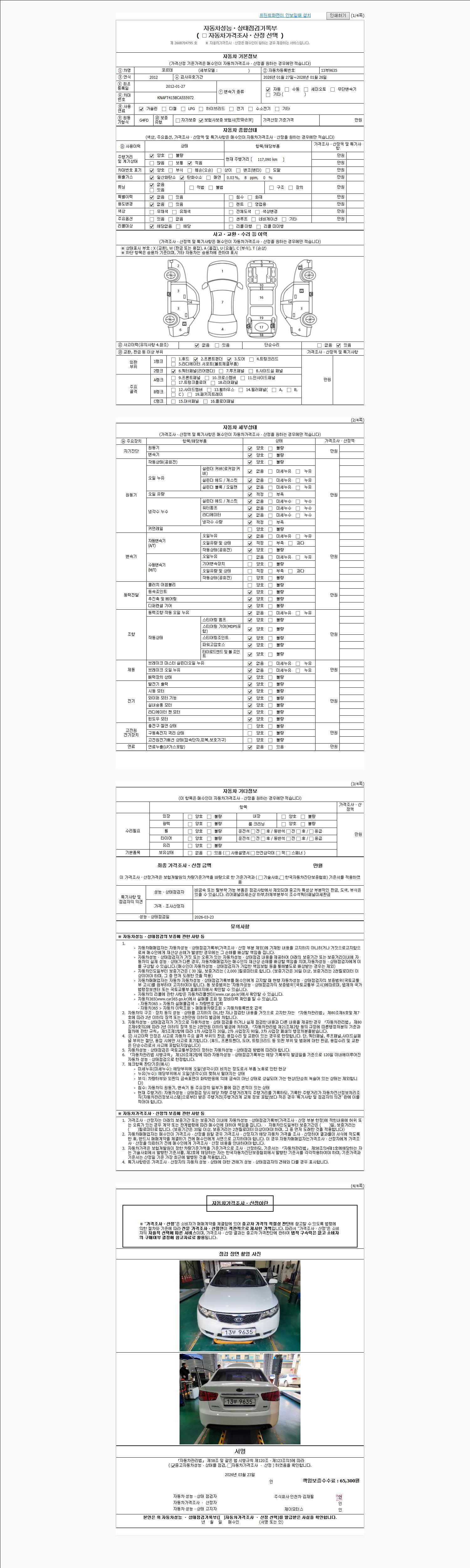 -중고자동차 매매업자를 통해 차량을 구입하실 경우 반드시 "중고자동차 성능, 상태점검 기록부"를 교뷰 받으셔야 하며, 매매업자는 반드시 의무 교부 하여야 압니다.