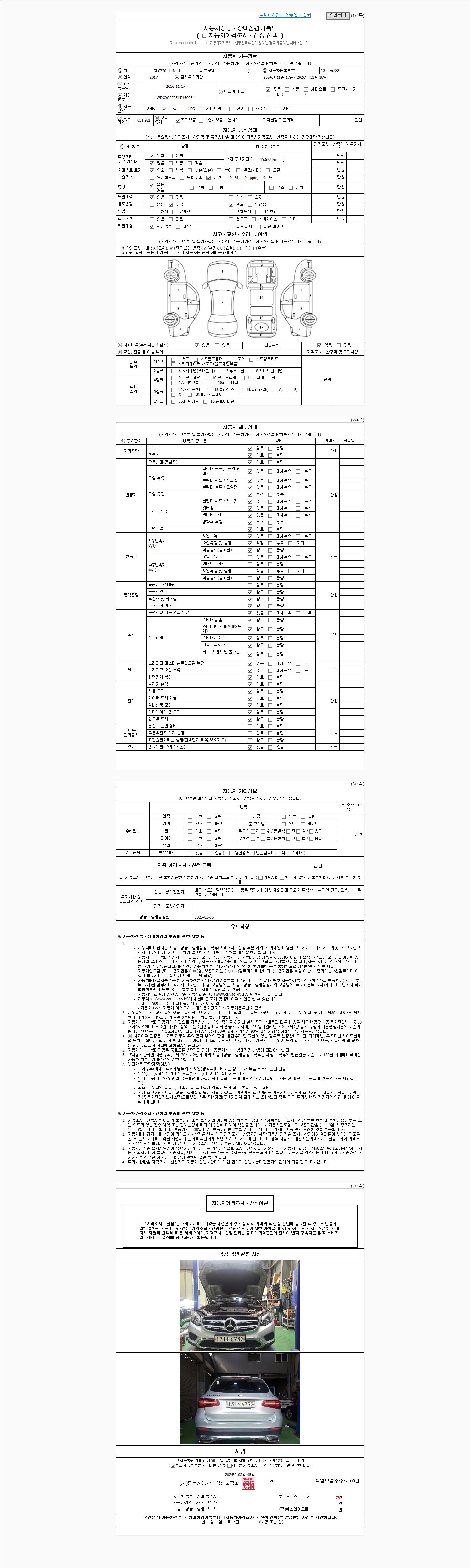 - 2. 차량 등록증이나 성능점검지 등을 상담자에게 요청및 확인하시고 사전에 미리 점검 하시기를 권유드립니다.