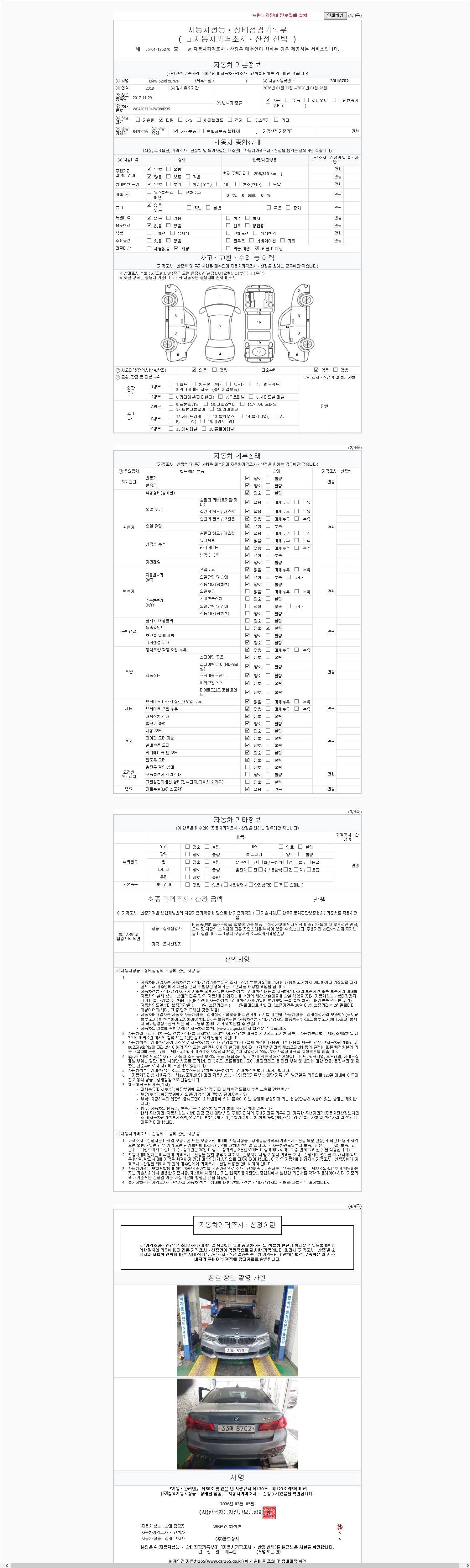 -중고자동차 매매업자를 통해 차량을 구입하실 경우 반드시 "중고자동차 성능, 상태점검 기록부"를 교뷰 받으셔야 하며, 매매업자는 반드시 의무 교부 하여야 압니다.
