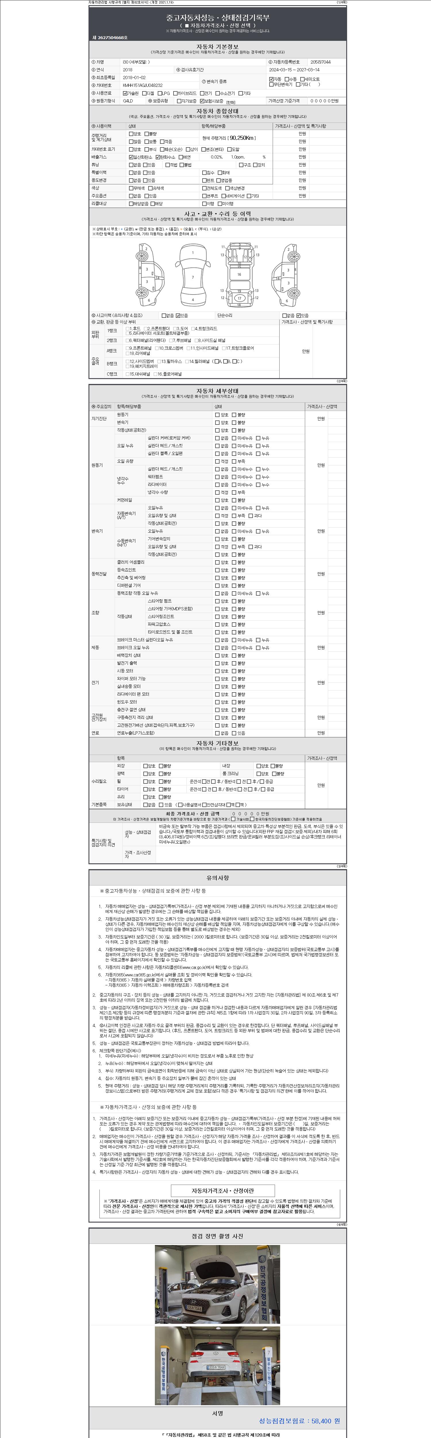 - 2. 차량 등록증이나 성능점검지 등을 상담자에게 요청및 확인하시고 사전에 미리 점검 하시기를 권유드립니다.