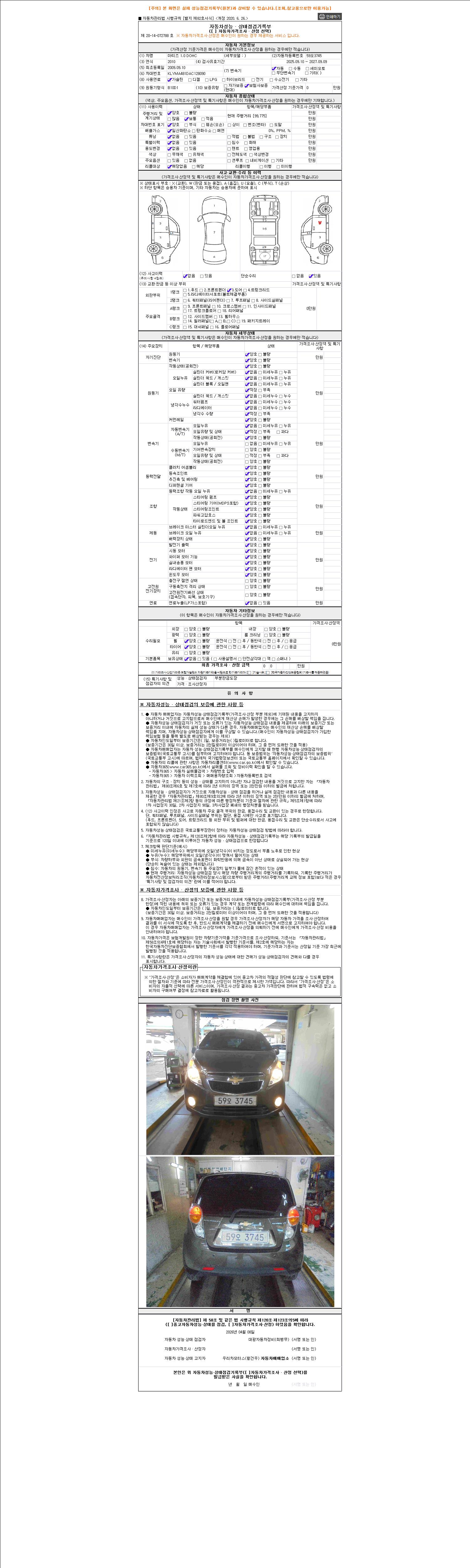- 2. 차량 등록증이나 성능점검지 등을 상담자에게 요청및 확인하시고 사전에 미리 점검 하시기를 권유드립니다.