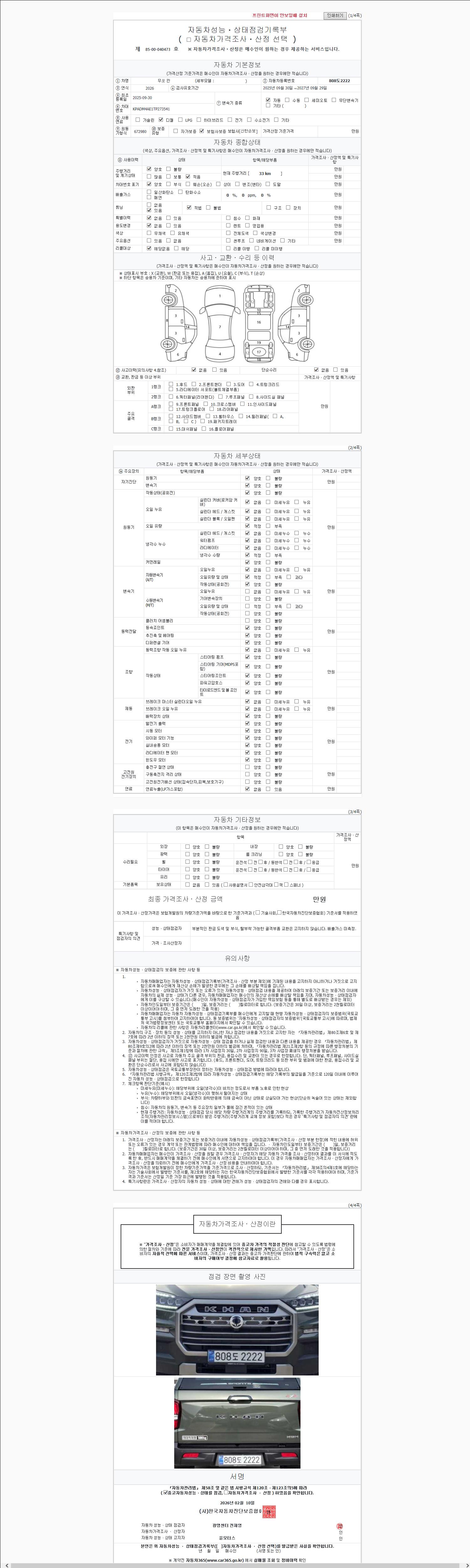 - 2. 차량 등록증이나 성능점검지 등을 상담자에게 요청및 확인하시고 사전에 미리 점검 하시기를 권유드립니다.