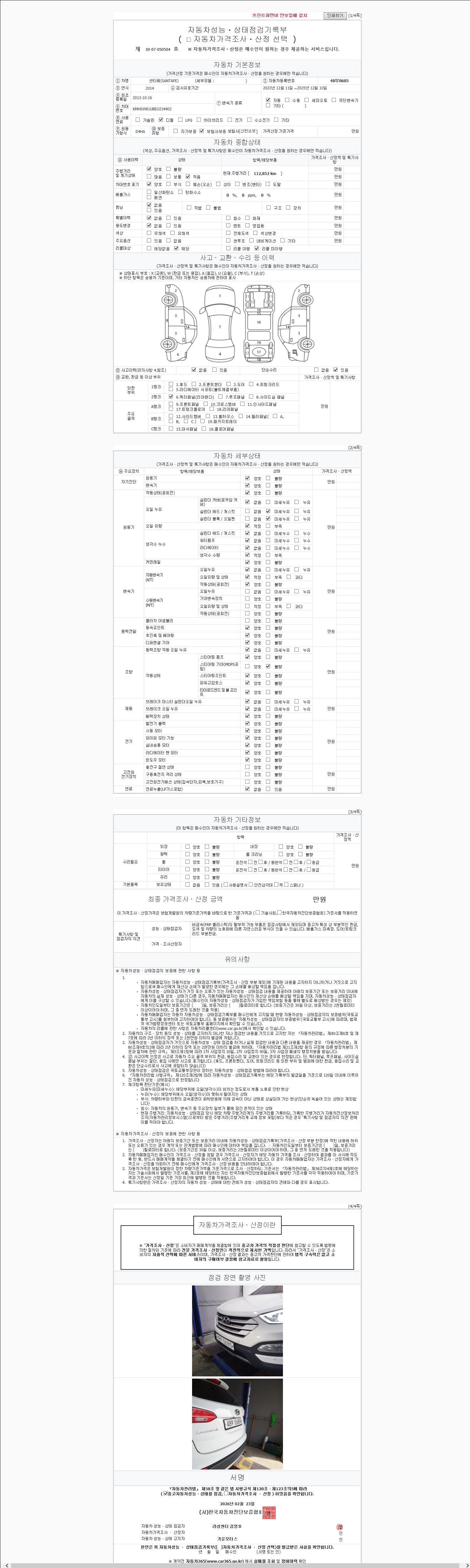 -중고자동차 매매업자를 통해 차량을 구입하실 경우 반드시 "중고자동차 성능, 상태점검 기록부"를 교뷰 받으셔야 하며, 매매업자는 반드시 의무 교부 하여야 압니다.