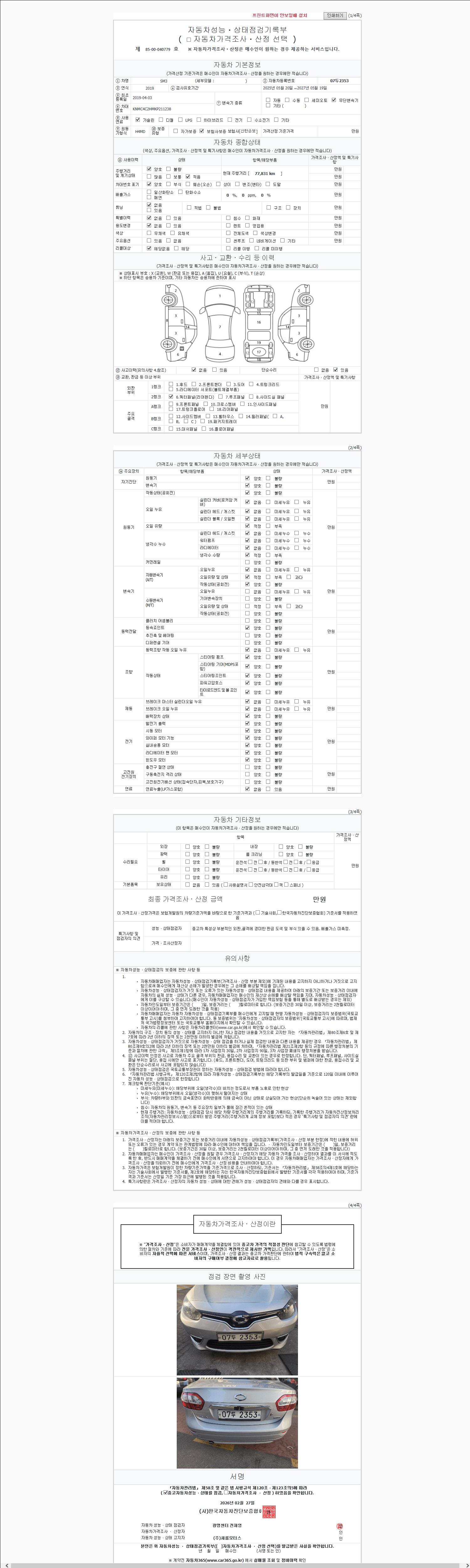 - 2. 차량 등록증이나 성능점검지 등을 상담자에게 요청및 확인하시고 사전에 미리 점검 하시기를 권유드립니다.
