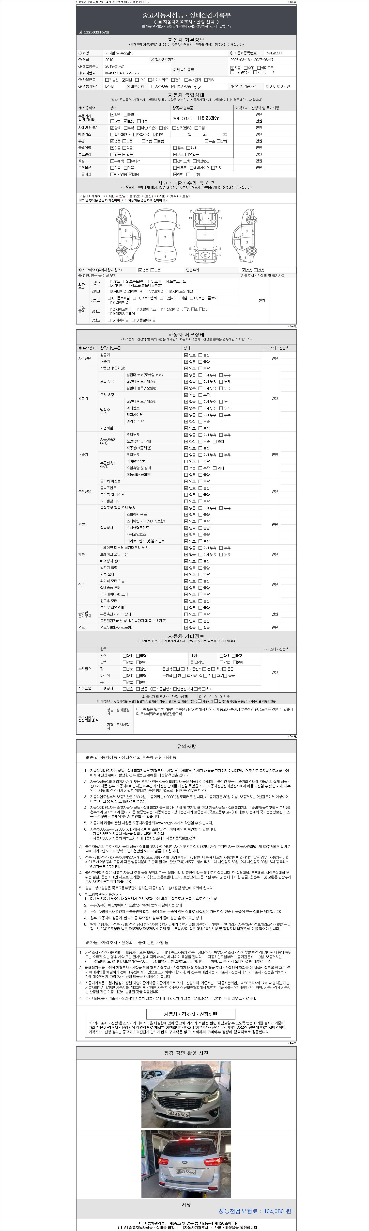 | 주행거리 | 118,233 km | 차량번호 | 384고5566 | 사고유무 | 성능기록부 참조 | 제시번호 | 제 2147483647 호 |