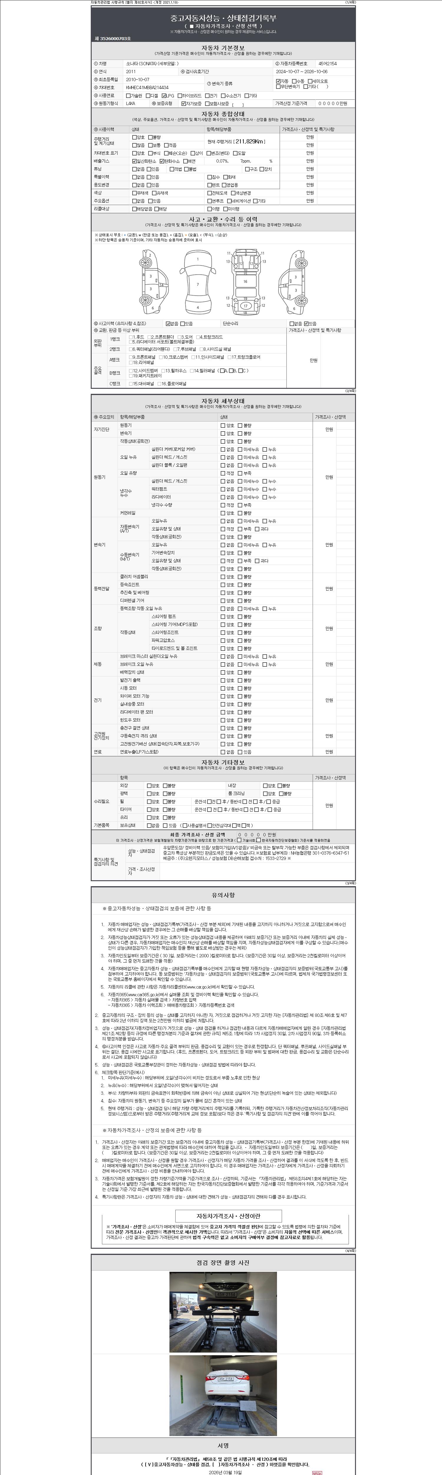 - 2. 차량 등록증이나 성능점검지 등을 상담자에게 요청및 확인하시고 사전에 미리 점검 하시기를 권유드립니다.