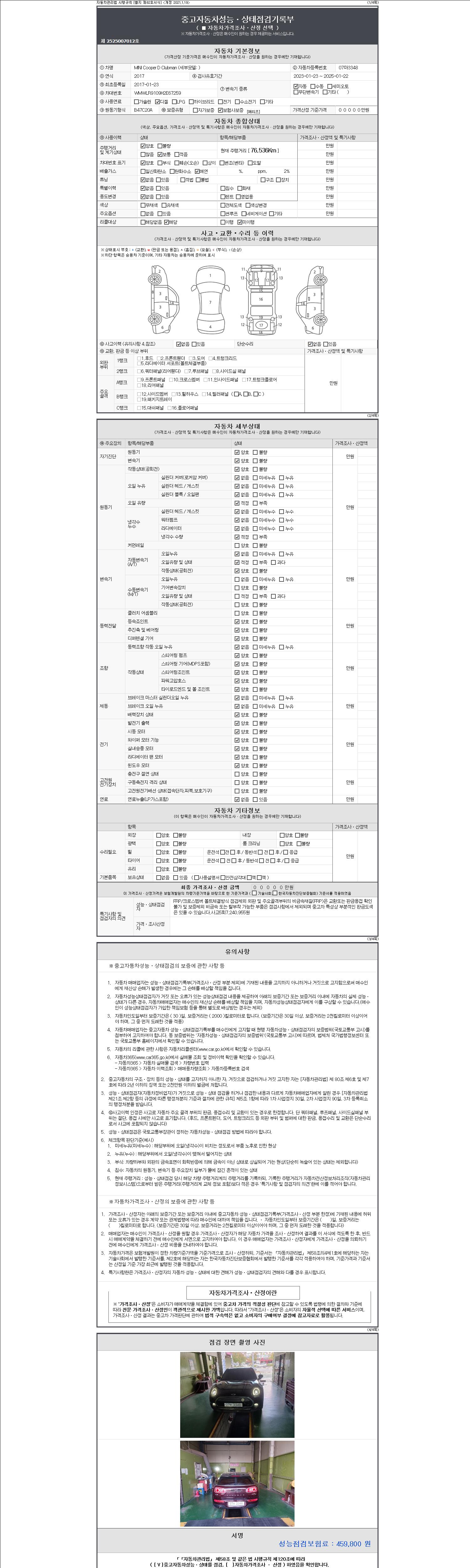 - 2. 차량 등록증이나 성능점검지 등을 상담자에게 요청및 확인하시고 사전에 미리 점검 하시기를 권유드립니다.
