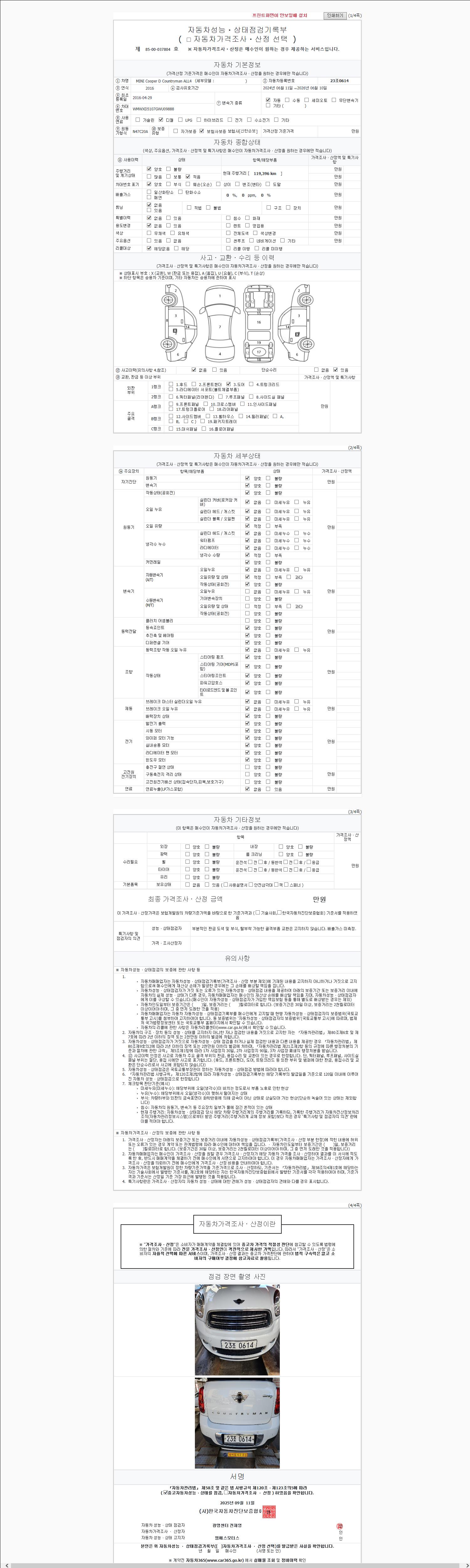 - 사고유무 : 성능기록부 참조